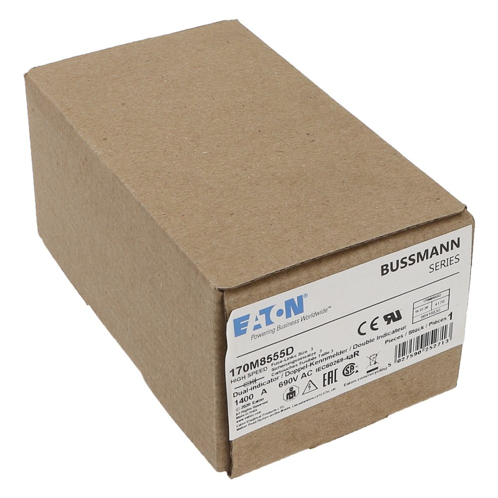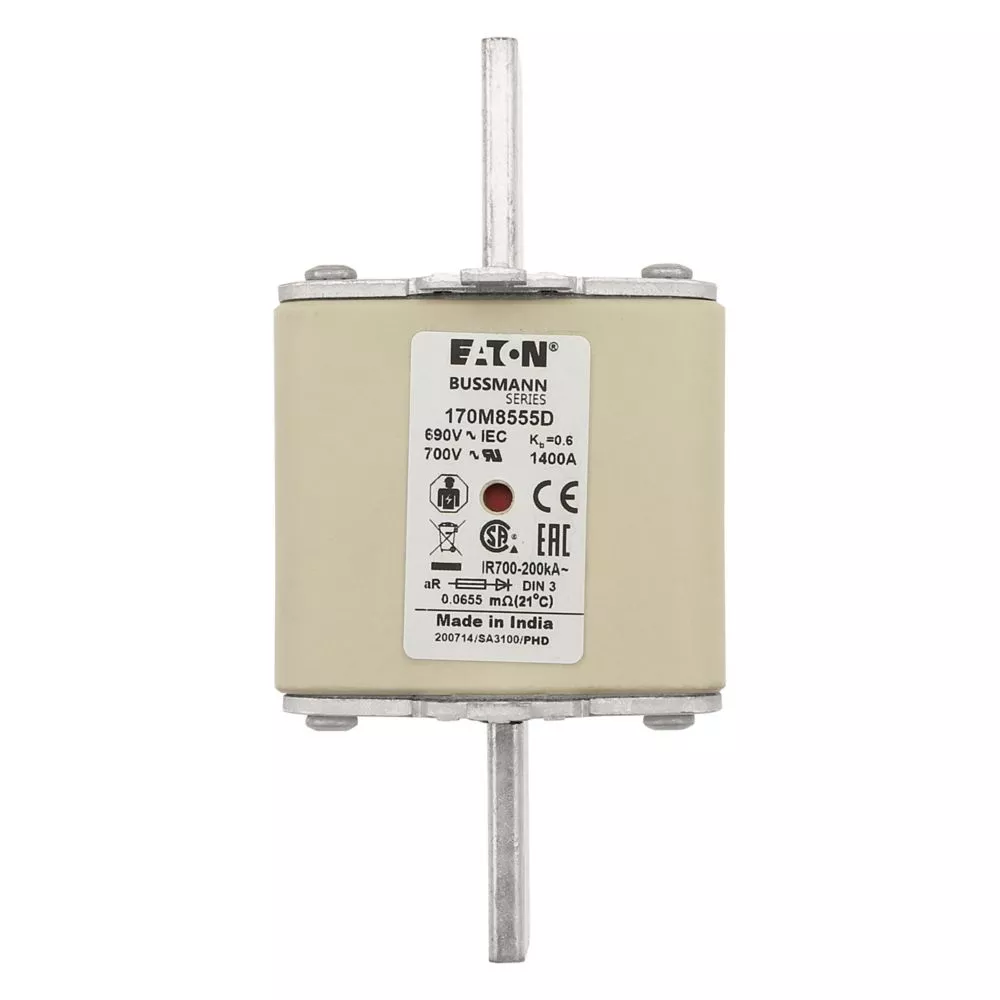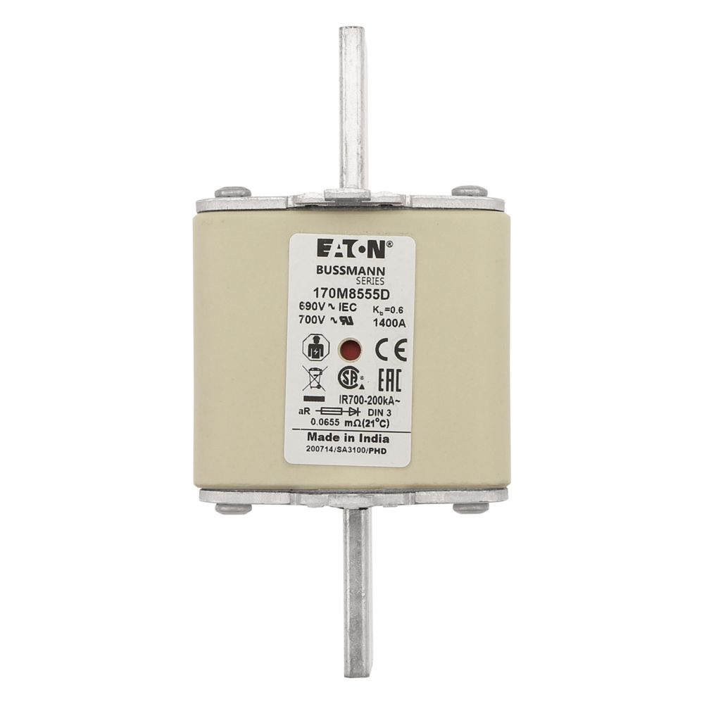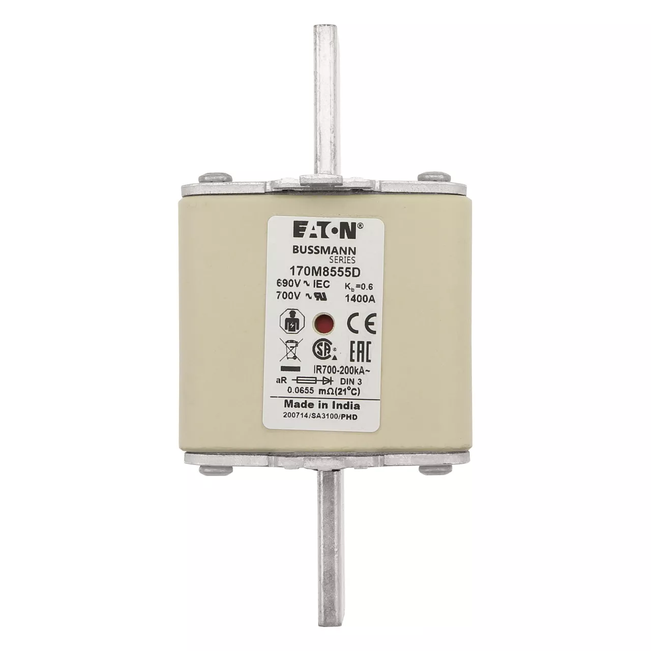 170M8555D Wkładka szybka, 1400 A, AC 690 V, DIN 3, aR, DIN, IEC, podwójny wskaźnik, nieizolowane uchwyty