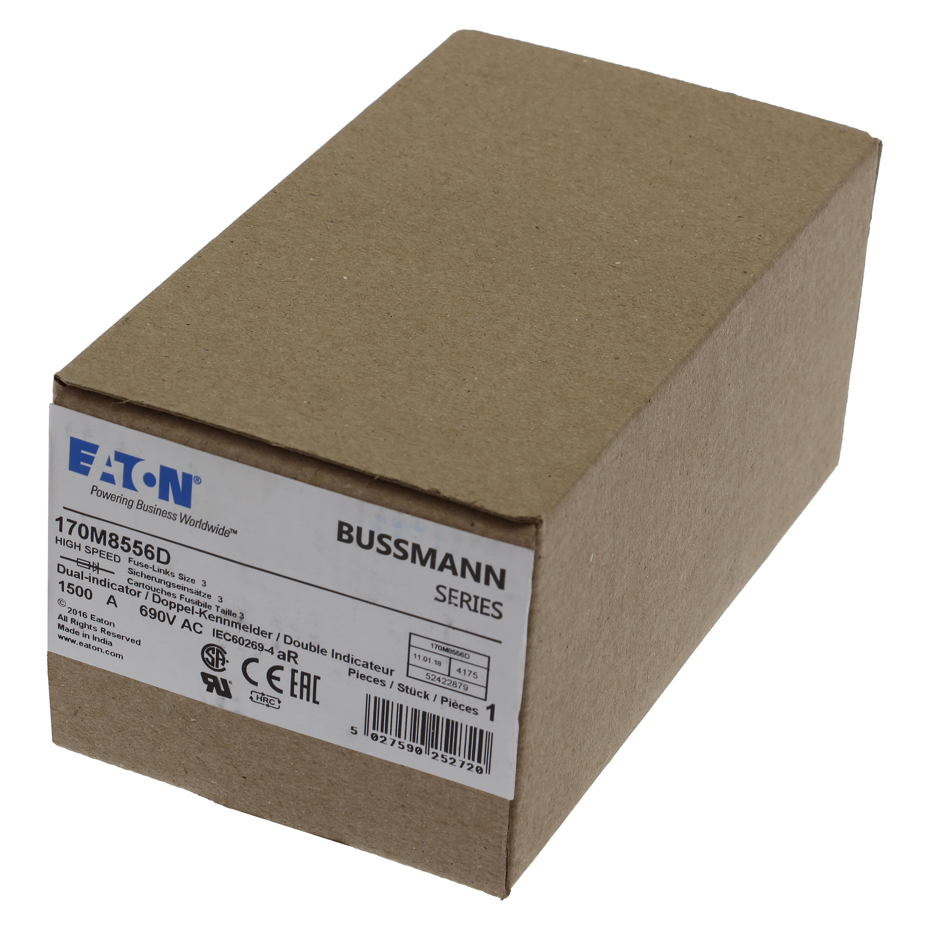 170M8556D Wkładka szybka, 1500 A, AC 690 V, DIN 3, aR, DIN, IEC, dual (combination) indicator system