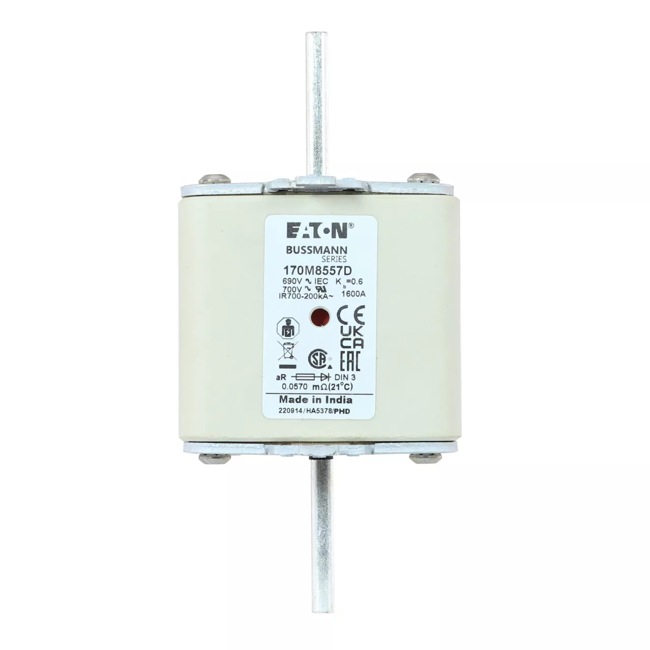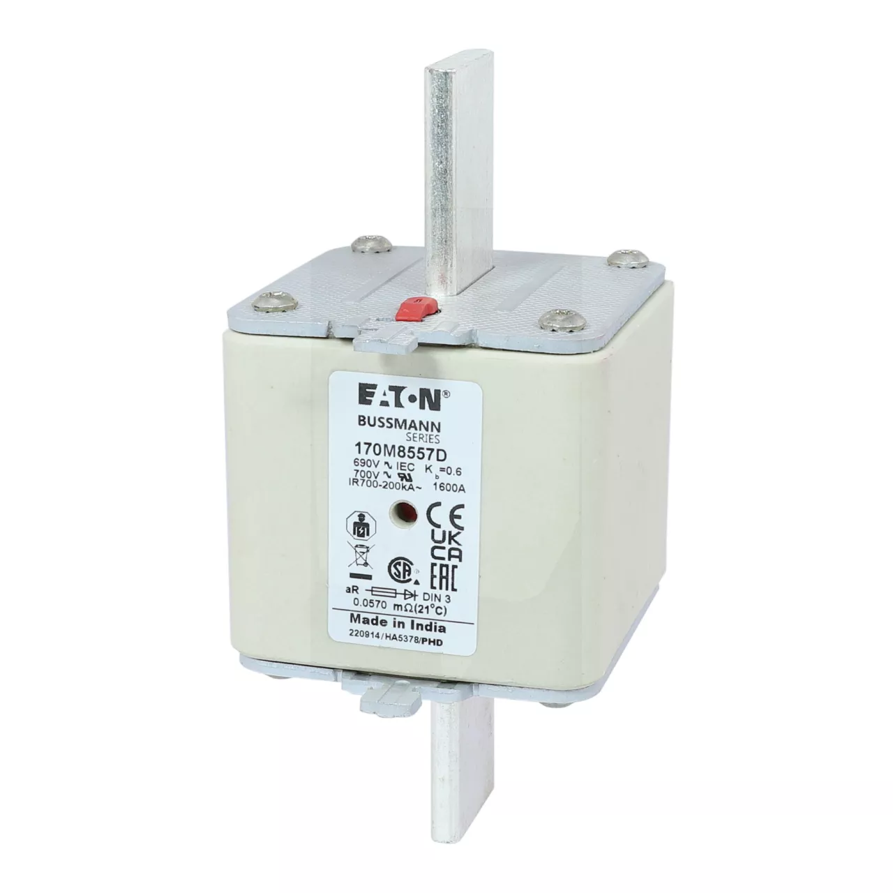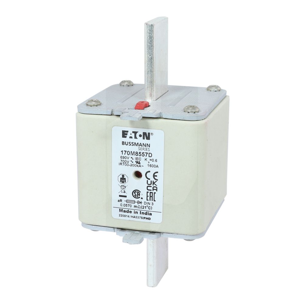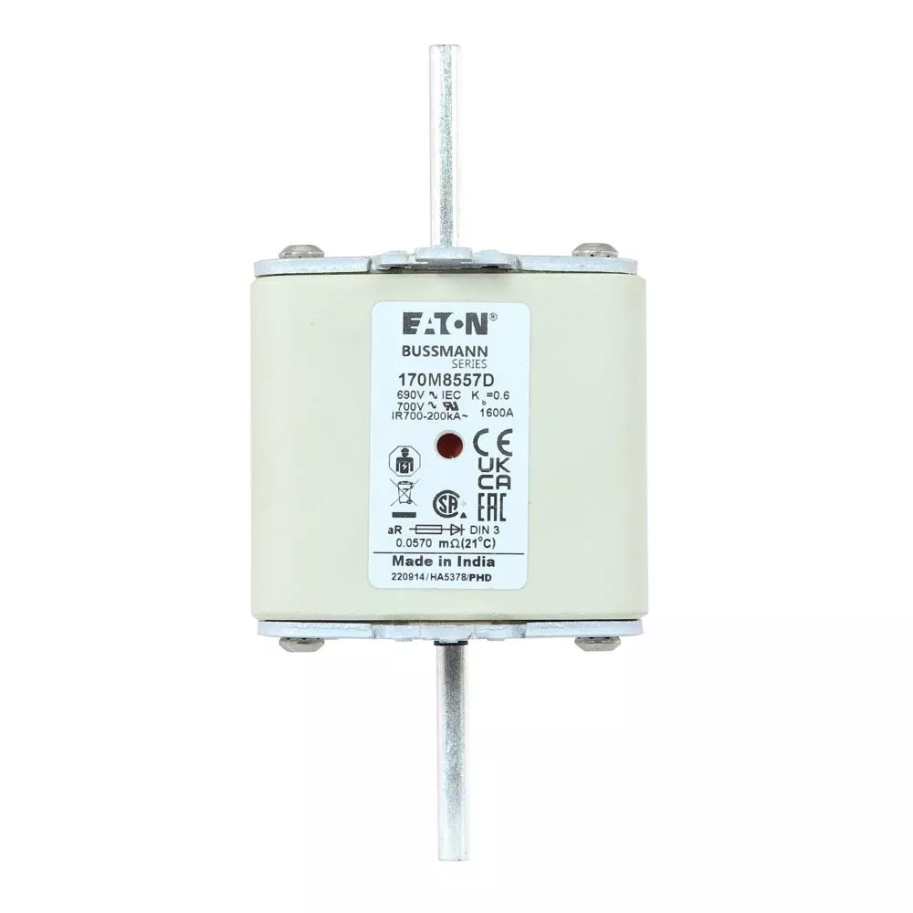 170M8557D Wkładka szybka, 1600 A, AC 690 V, DIN 3, aR, DIN, IEC, podwójny wskaźnik, nieizolowane uchwyty