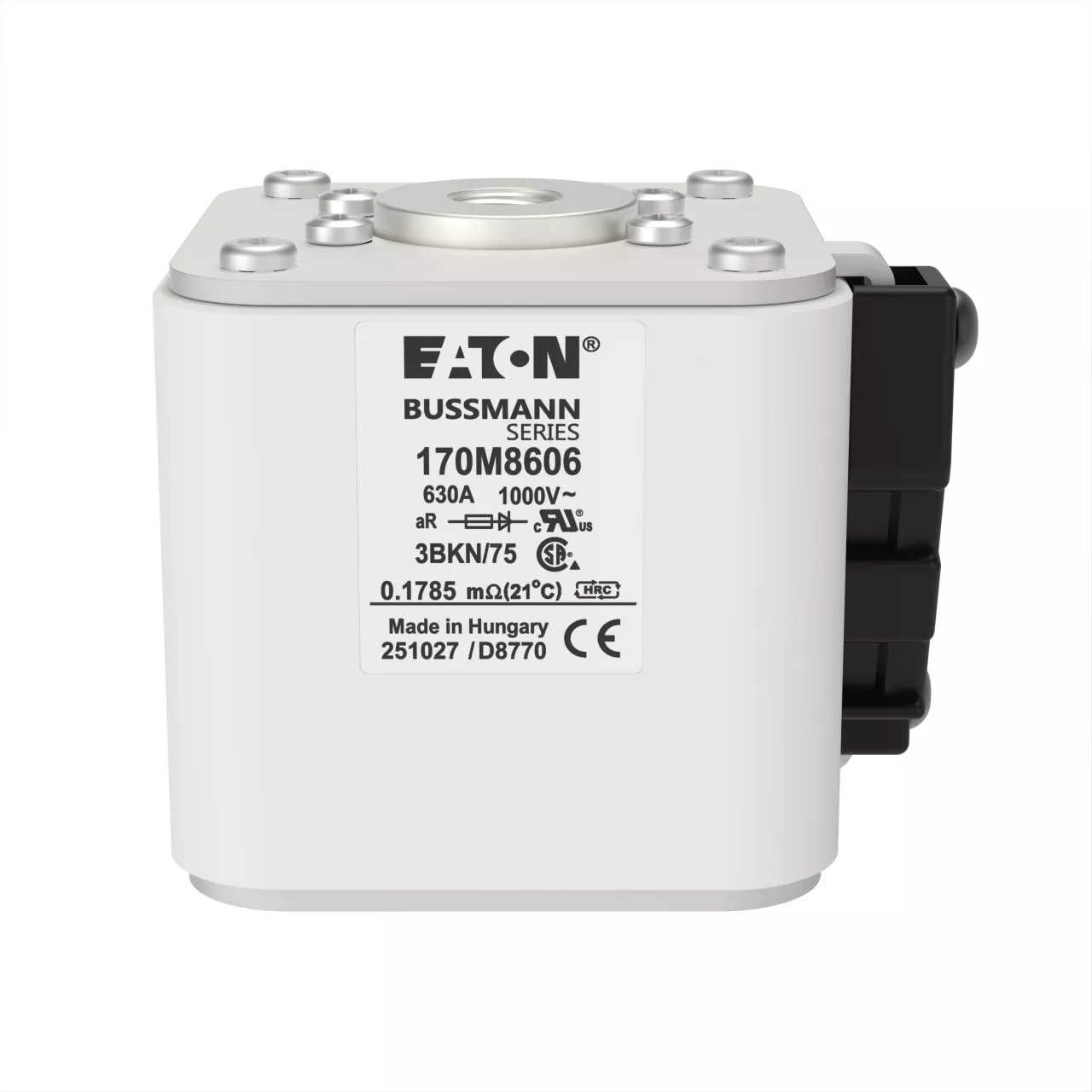 170M8606 Wkładka szybka, 630 A, AC 1000 V, size 3, 74 x 92 x 76 mm, aR, IEC, UL