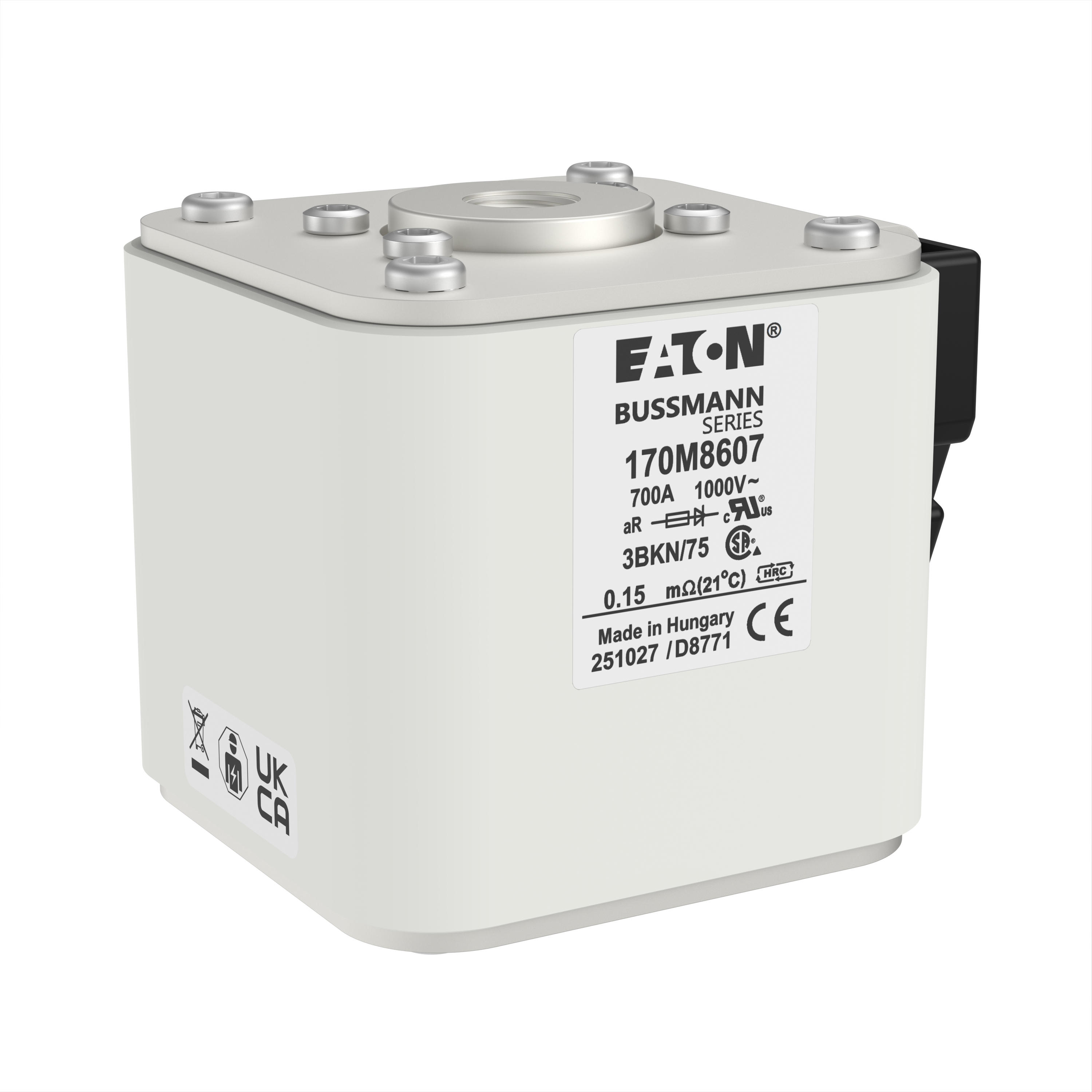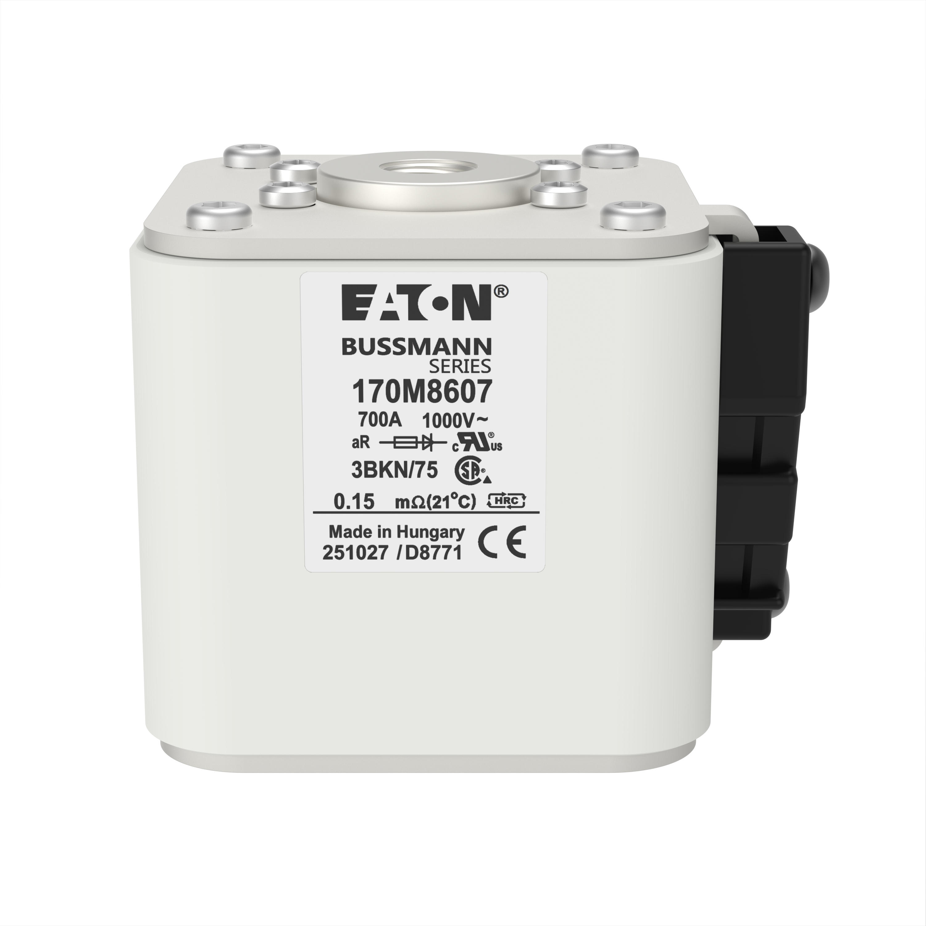 170M8607 Wkładka szybka, 700 A, AC 1000 V, size 3, 74 x 92 x 76 mm, aR, IEC, UL