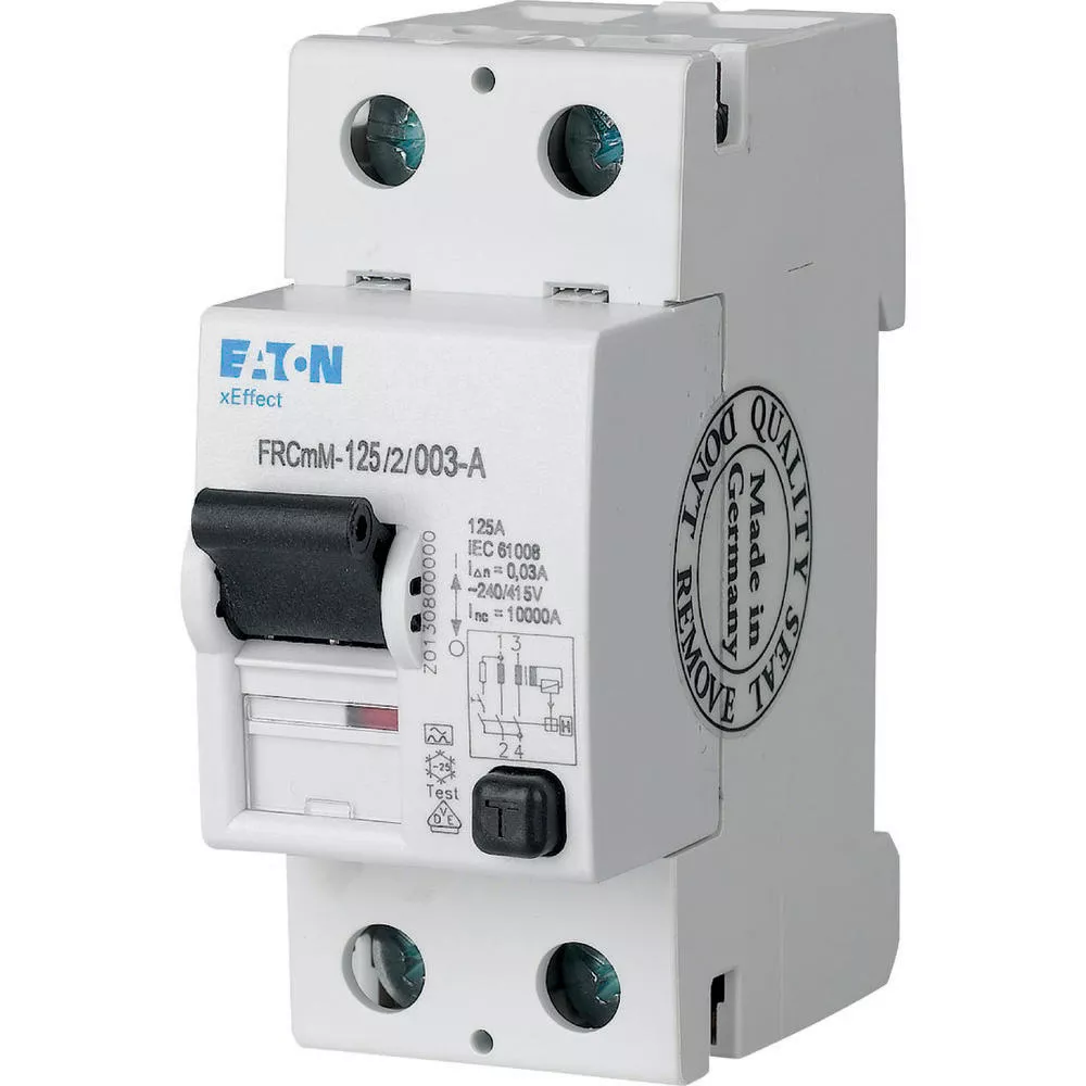 Aardlekschakelaar FRCmM-125, 2-polig, Nominale stroom In: 125 A, Nominale kortsluitvastheid Icn: 10 met reservezekering kA, Nominale foutstroom IΔN: 0,1 A, Schakelapparatuur industriële en geavanceerde commerciële toepassingen