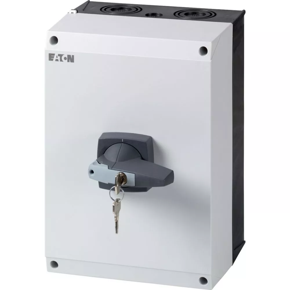 Rozłącznik izolacyjny, Zacisk śrubowy: Rozłącznik izolacyjny, Wyłącznik główny, wyłącznik serwisowy, Odniesienie grupy części DMM, z szarym pokrętłem, Uwagi: w obudowie CI-K5, Informacje dotyczące dostarczonego sprzętu: styk pomocniczy montowany przez użytkownika., 3-biegunowy, mechanizm blokujący: zamek bębenkowy, Stopień ochrony: IP65, Projekt: montaż powierzchniowy, Moc znamionowa AC-23A, 50 - 60 Hz 400 V: P = 80 kW, Znamionowy prąd ciągły: Iu = 160 A, Normy: IEC/EN 60947, VDE 0660, IEC/EN 60204, Rozłącznik izolacyjny zgodnie z normą IEC/EN 60947-3