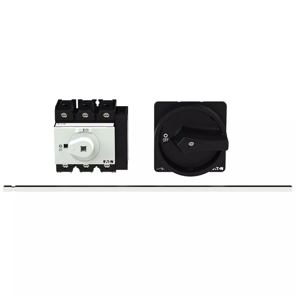 Wyłącznik główny, Zacisk śrubowy: Wyłącznik główny, wyłącznik serwisowy, Odniesienie do grupy części: P3, Funkcja zatrzymania: Funkcja STOP, Z czarnym uchwytem obrotowym i pierścieniem blokującym, Uwagi: Uchwyt do stosowania tylko z przedłużeniem osi P1/P3-400 (172844)., Uwagi: Z metalowym wałkiem do rozdzielnic o głębokości 400 mm, Informacje dotyczące dostarczonego sprzętu: Styk pomocniczy lub zaciski przewodu neutralnego montowane przez użytkownika., 3-biegunowy, Element blokujący: Możliwość zablokowania w położeniu 0 (Wył.), Stopień ochrony: Przód IP65, Projekt: montaż na panelu tylnym, Moc znamionowa AC-23A, 50 - 60 Hz 400 V: P = 30 kW, Znamionowy prąd ciągły: Iu = 63 A, Normy: IEC/EN 60947, VDE 0660