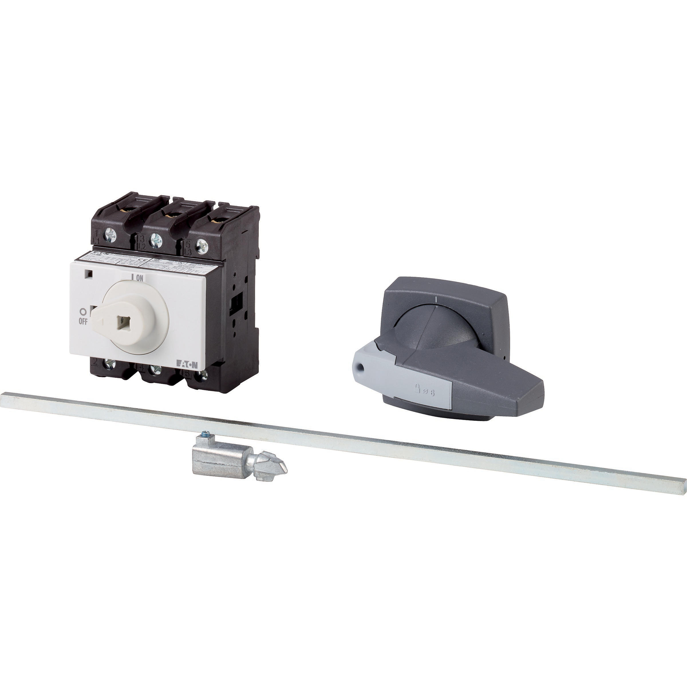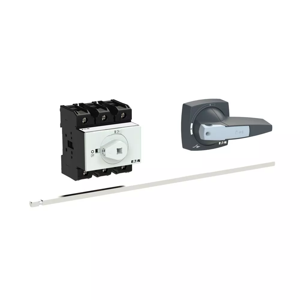 Wyłącznik główny, Zacisk śrubowy: Wyłącznik główny, wyłącznik serwisowy, Odniesienie do grupy części: P3, Funkcja zatrzymania: Funkcja STOP, Z czarnym uchwytem obrotowym i pierścieniem blokującym, Uwagi: Z metalowym wałkiem do rozdzielnic o głębokości 400 mm, Informacje dotyczące dostarczonego sprzętu: Styk pomocniczy lub zaciski przewodu neutralnego montowane przez użytkownika., 3-biegunowy, Element blokujący: Możliwość zablokowania w położeniu 0 (Wył.), Stopień ochrony: Przód IP65, Projekt: montaż na panelu tylnym, Moc znamionowa AC-23A, 50 - 60 Hz 400 V: P = 30 kW, Znamionowy prąd ciągły: Iu = 63 A, Normy: IEC/EN 60947, VDE 0660, IEC/EN 60204, Rozłącznik izolacyjny zgodnie z normą IEC/EN 60947-3