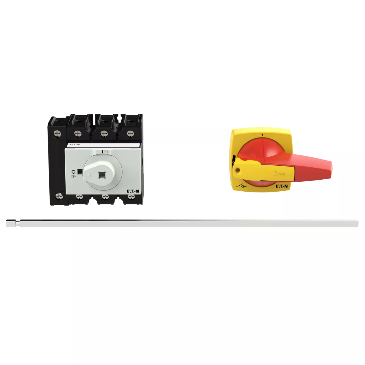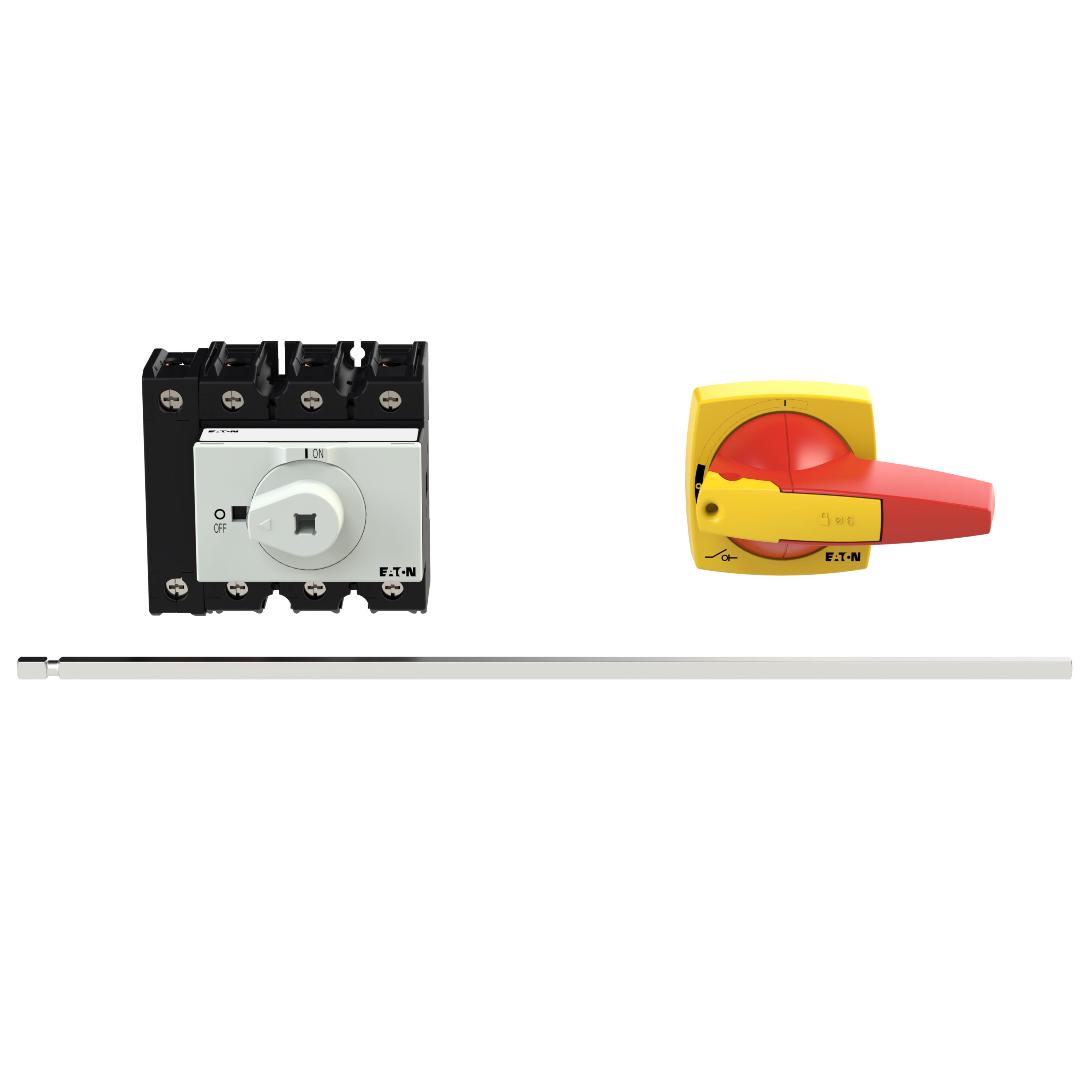 Wyłącznik główny, Zacisk śrubowy: Wyłącznik główny, wyłącznik serwisowy, Odniesienie do grupy części: P3, Funkcja zatrzymania: Funkcja wyłączania awaryjnego, z czerwonym uchwytem obrotowym i żółtym pierścieniem blokującym, Uwagi: Z metalowym wałkiem do rozdzielnic o głębokości 400 mm, Informacje dotyczące dostarczonego sprzętu: styk pomocniczy montowane przez użytkownika., 3-biegunowy + N, Element blokujący: Możliwość zablokowania w położeniu 0 (Wył.), Stopień ochrony: Przód IP65, Wykonanie: montaż rozłączny (na panelu tylnym), Moc znamionowa AC-23A, 50 - 60 Hz 400 V: P = 55 kW, Znamionowy prąd ciągły: Iu = 100 A, Normy: IEC/EN 60947, VDE 0660, IEC/EN 60204, Rozłącznik izolacyjny zgodnie z normą IEC/EN 60947-3
