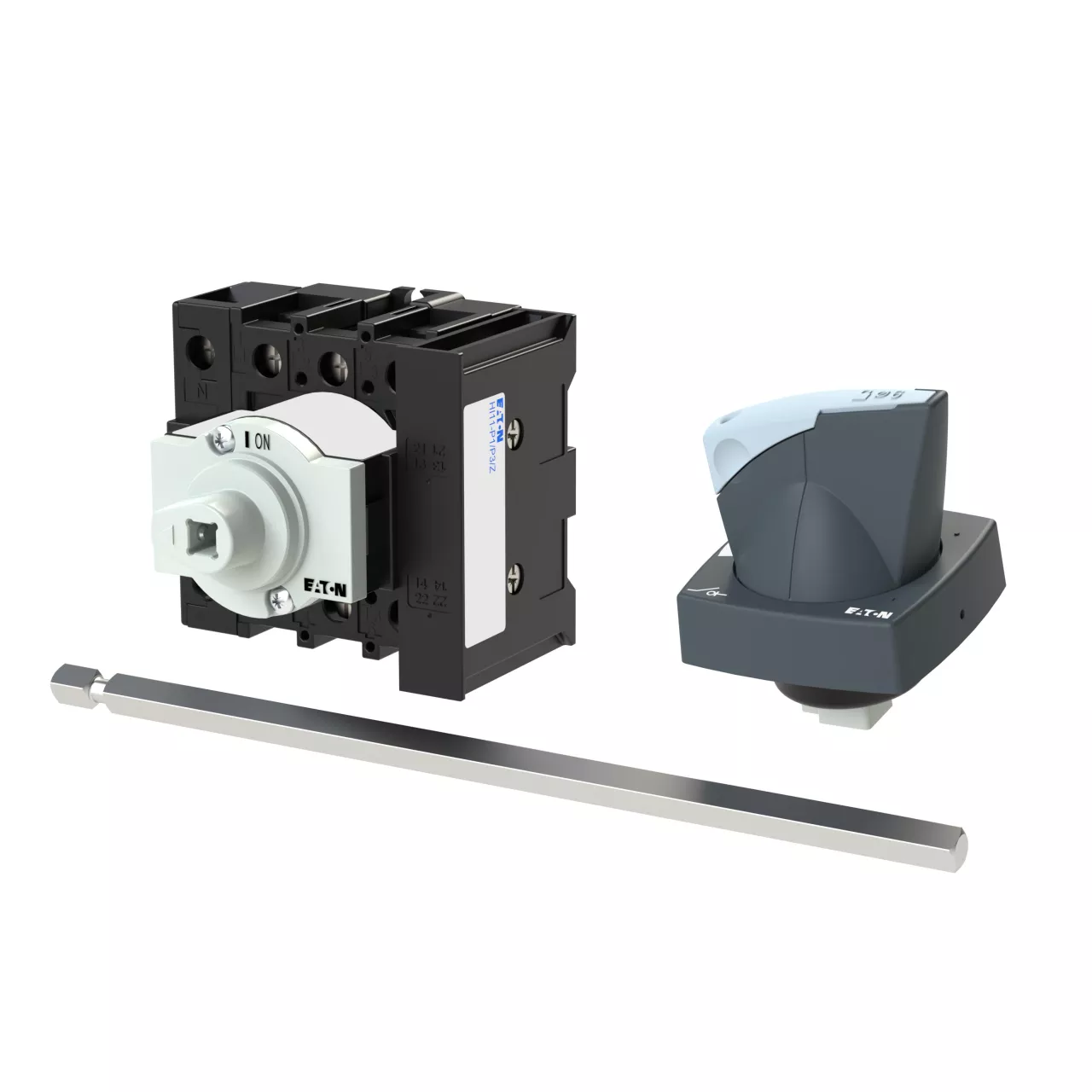 Wyłącznik główny, P1, Znamionowy prąd ciągły (Iu): 25 A, Funkcje: Z mechanizmem ryglującym, Funkcja STOP, Wyposażone w: Metalowa oś do rozdzielnic o głębokości 400 mm, Czarny uchwyt obrotowy i pierścień blokujący, Sposób montażu: Montaż na panelu tylnym, Liczba biegunów: Czterobiegunowy, Element blokujący: Możliwość zablokowania w położeniu 0 (Wył.), Stopień ochrony: NEMA 12