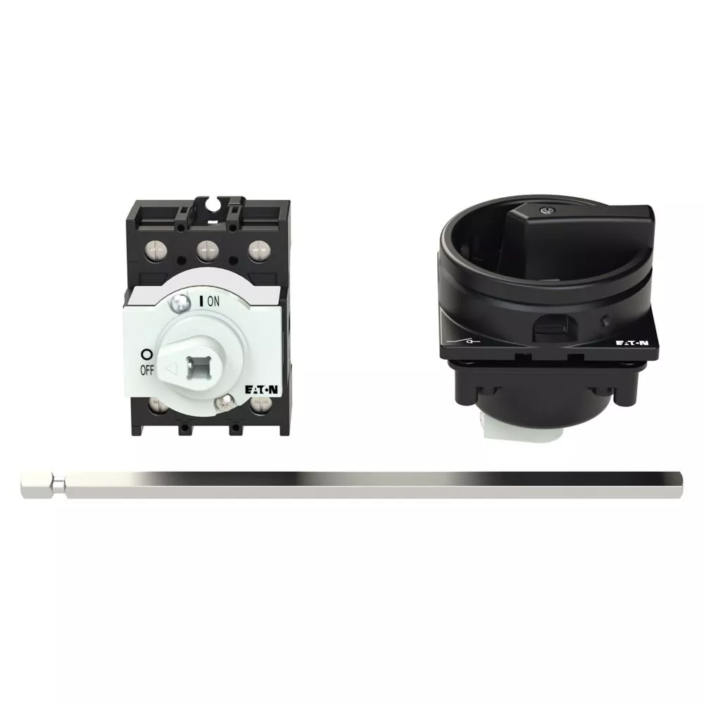 Wyłącznik główny, P1, Znamionowy prąd ciągły (Iu): 32 A, Funkcje: Funkcja STOP, Z mechanizmem ryglującym, Wyposażone w: Czarny uchwyt obrotowy i pierścień blokujący, Metalowa oś do rozdzielnic o głębokości 400 mm, Sposób montażu: Montaż na panelu tylnym, Liczba biegunów: Trzybiegunowy, Element blokujący: Możliwość zablokowania w położeniu 0 (Wył.), Stopień ochrony: NEMA 12
