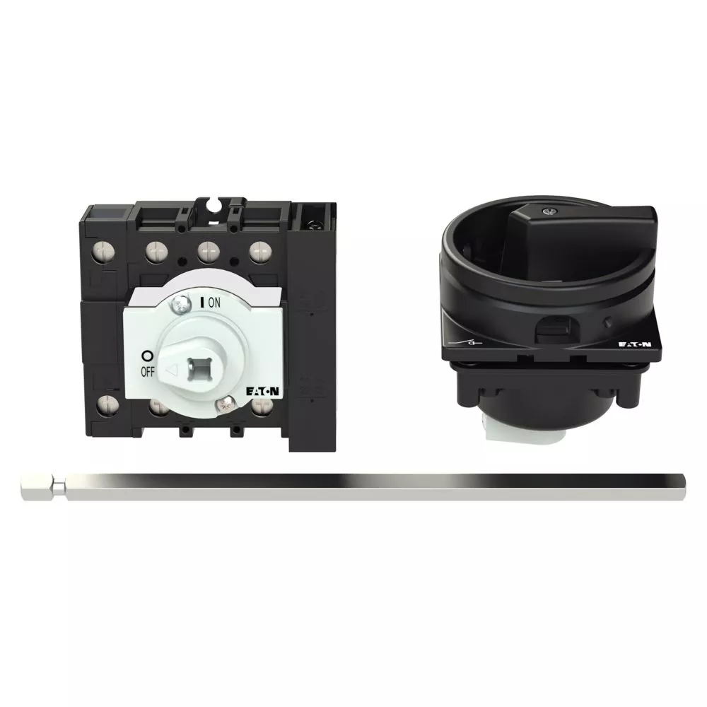 P1-32/M4/N/HI11/SVB-SW Rozłącznik główny, 3 bieg. + N + 1 NO + 1 NC, 32 A, funkcja awaryjnego zatrzymania , blok. na kłódkę w pozycji Wył., z 400 mm metalową osią, montaż rozłączny, pokrętło czarne z blokadą na kłódkę