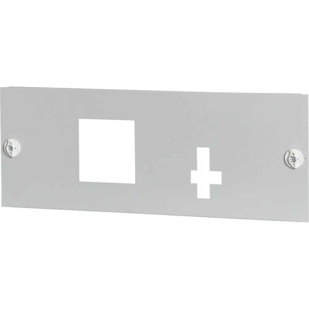 Frontschild für NZM2 + XFI, symmetrisch, BPZ-FP/S, horizontal, Breite 800 mm, Höhe 200mm, max. 1x NZM2 4-polig + XFI, Stahlblech, pulverbeschichtet, RAL 7035, mit Erdung verbundene Verschlüsse, vorbereitete Öffnungen in Frontplatte, ohne Montageplatte, nur in Kombination mit NZM-Montageplatte symmetrisch verwendbar