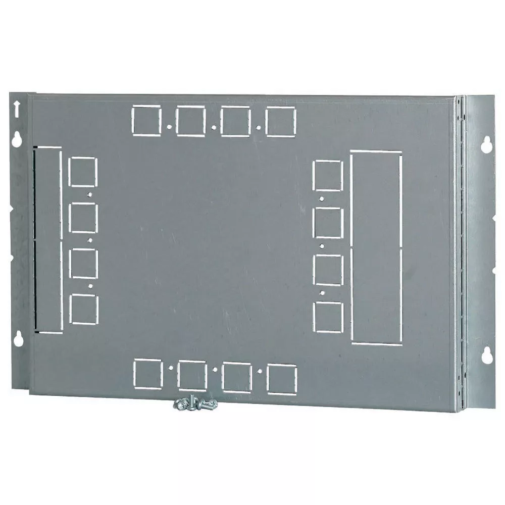 NZM Montageplatte, symmetrisch, vorbereitet für Anschluss hinten, BPZ-MPL-NZM..-...-MX, Breite 600 mm, max. 1x NZM3 vertikal, ohne Frontplatte, für die Montage von NZM-Schaltern vertikal und horizontal geeignet, bei horizontaler Montage nur 1 NZM möglich, Stahlblech (2 mm), verzinkt, im Lieferumfang enthalten: 1 Montageplatte, diverses Montagezubehör
