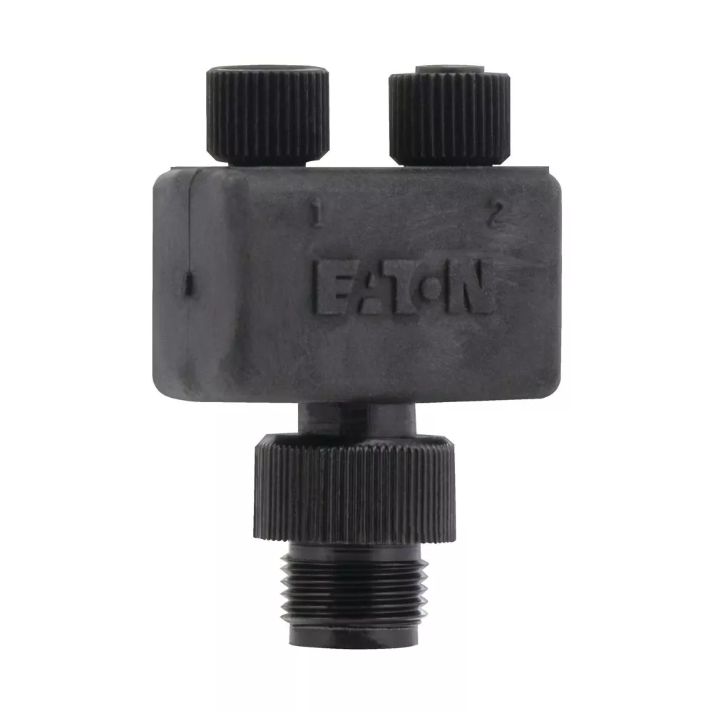 Rozdzielacz SmartWire-DT o stopniu ochrony IP67, z wtyku M12 na dwa 4-biegunowe gniazda M8 z sygnałem we/wy na pinie 2