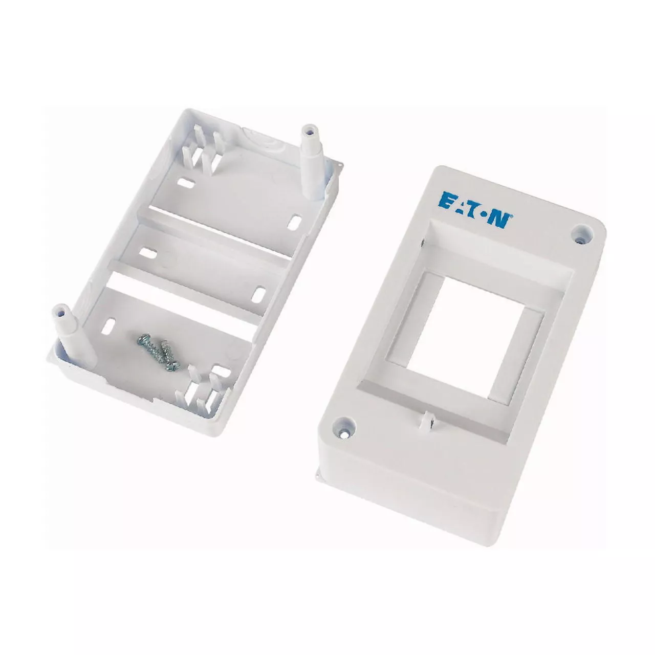 Mini-Kleinverteiler aus Kunststoff, für die Installation von Schalt- und Schutzgeräten, gemäß Maßnorm DIN 43 880, mit 70 mm Einbautiefe und einer Spannung bis 63 A, 400 V /50 Hz, Schutzart IP20 nach IEC/EN 62208, zugelassen für Installationsverteilern in Gebäuden nach IEC/EN 61439-3, für Aufputzmontage, oben mit 46-mm-Geräteöffnung, standardmäßig plombierbar, Unterteil und Deckel weiß mit Schraubverschluss, Vorprägung für metrische Leitungseinführungen oben 1 x M20, unten 1 x M20 und Rückseite 2 x M20, Schutzklasse II, 3 Teilungseinheiten. Die Fensterklappe T3-MINI ist separat erhältlich.