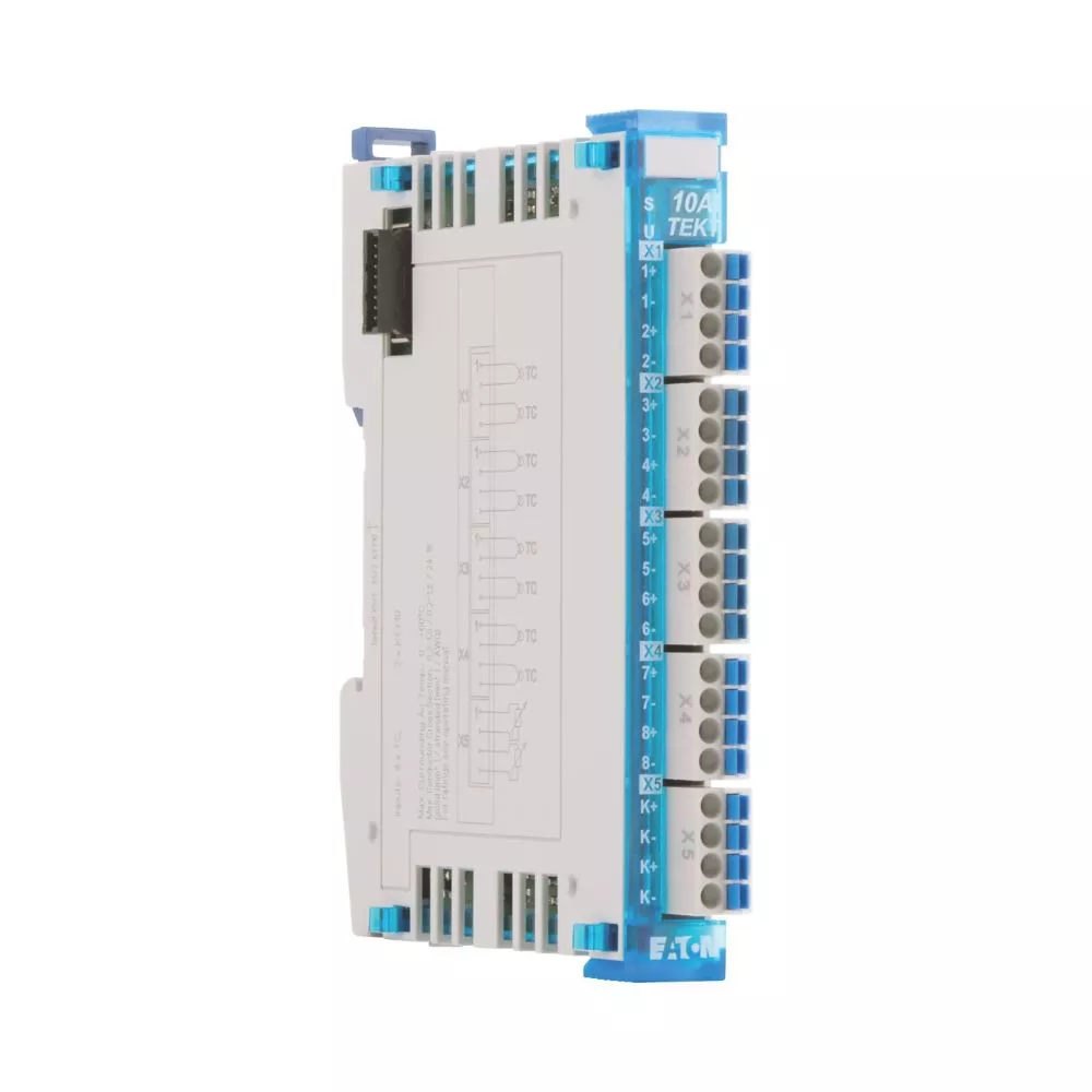 Analogowy moduł wejściowy dla ośmiu termopar i dwóch czujników temperaturowych KTY dla kompensacji zimnego złącza termopary.