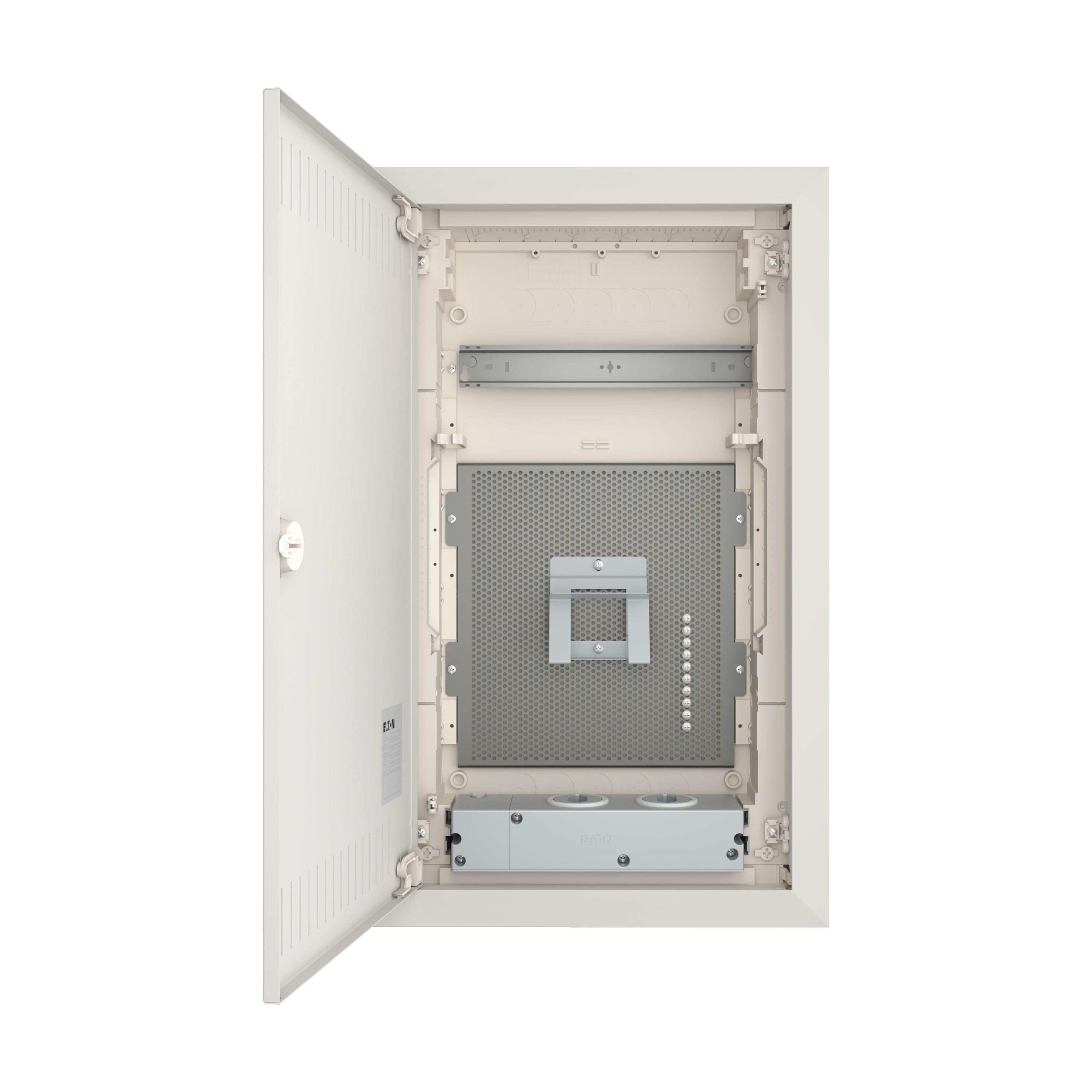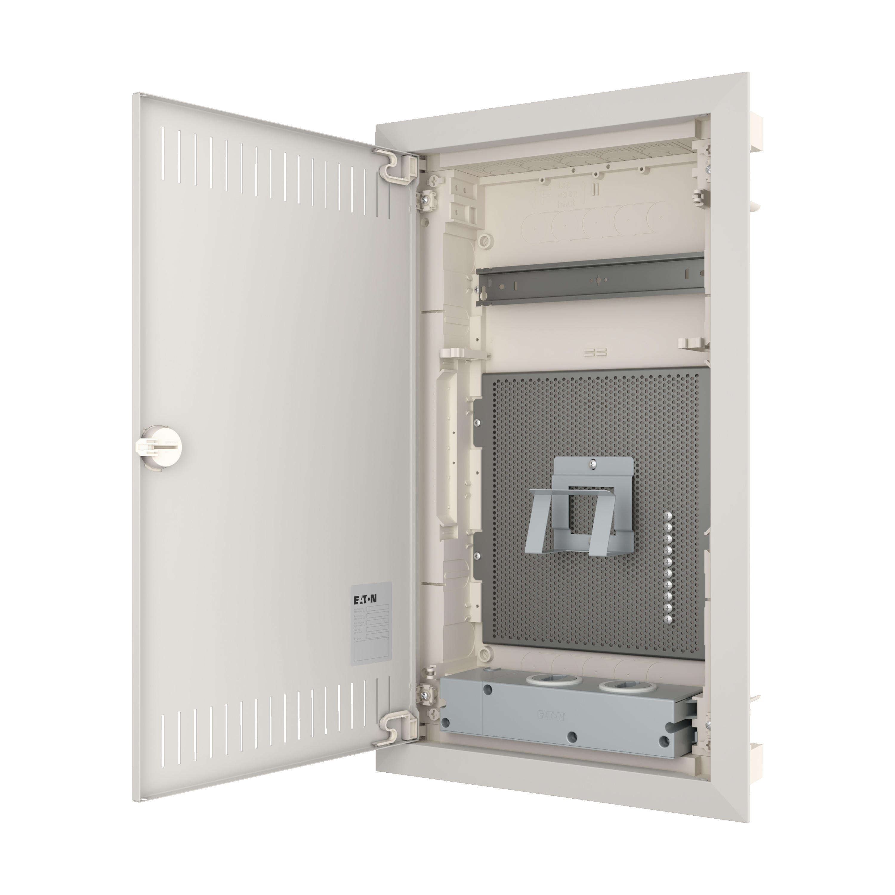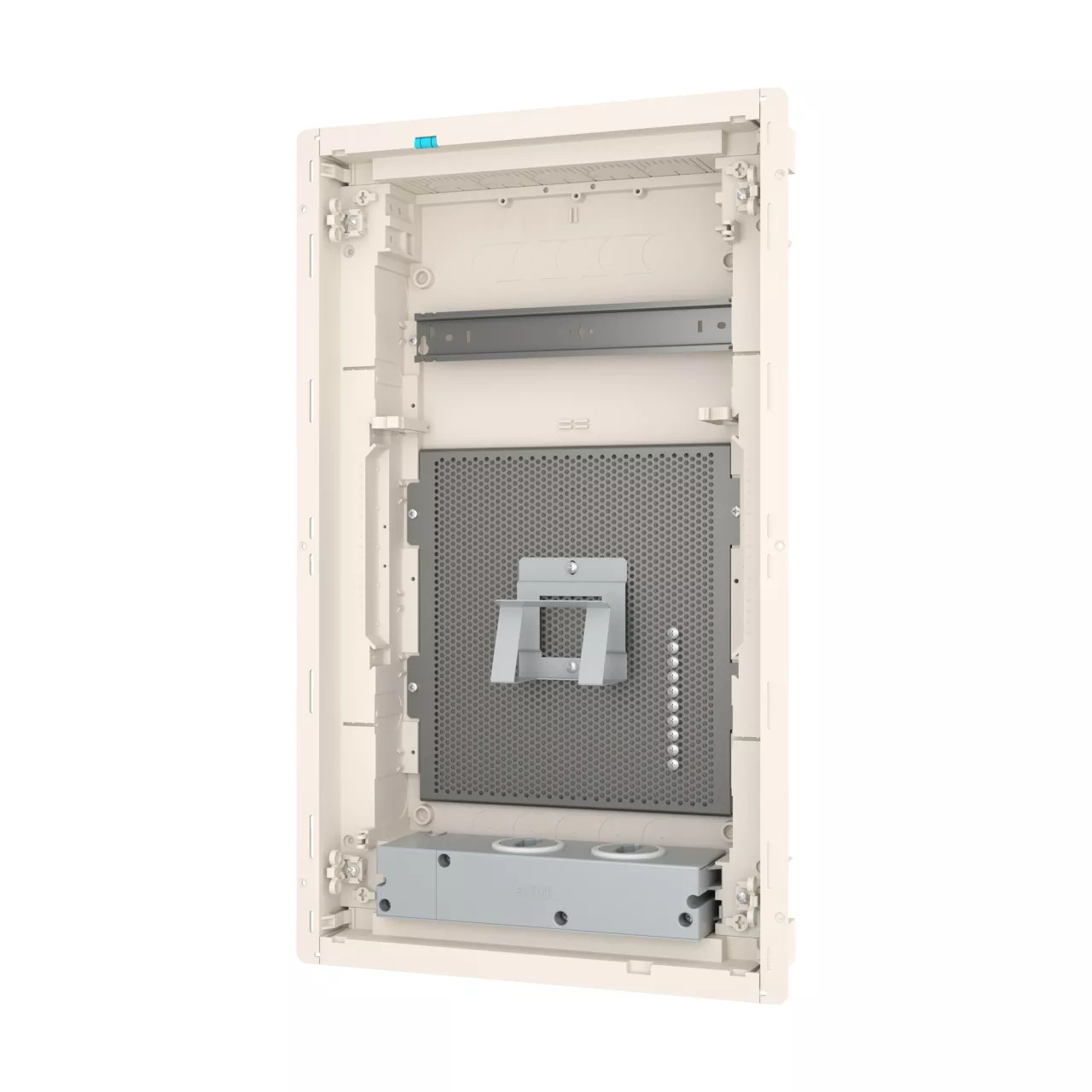 Tweede generatie KLV inbouw mediabehuizingen, kunststof verdeler met plaatstalen deur met ventilatieopeningen, markeersleuf in inbouwdoos, smal deurframe-ontwerp, robuust deurcilinderslot, optioneel vervangbaar met veiligheidsvergrendeling, kabelhouder voor nette kabelgeleiding, optioneel beschikbaar in de vorm van levering voor projecten, optionele deur met frame in gewenste RAL-kleur, uitgebreid assortiment accessoires, geleverde apparatuur: behuizing, 1x montagerail, montageplaat met microperforatie, 1x apparaathouder, 2x enkelvoudige contactdoos met insteekeenheden en Euro2-adapter, waterpas voor uitlijnen