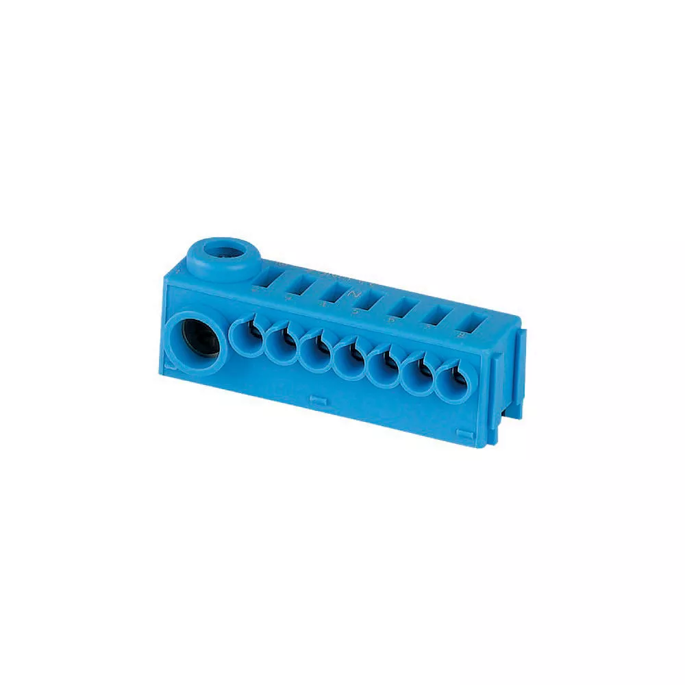 Kombi-Steckklemme KSK, individuell, blau für Neutralleiter, 63A / 400V AC, Schutzart IP2X, 1x Schraubverbindung für 2,5 bis 25 mm2 (fest/eindrähtig) oder 2,5 bis 16 mm2 (flexibel mit professionell verpresster Aderendhülse) und 7x steckbare Anschlüsse für 0,5 bis 4 mm2 (fest/eindrähtig) oder 2,5 bis 16 mm2 (flexibel mit professionell verpresster Aderendhülse).