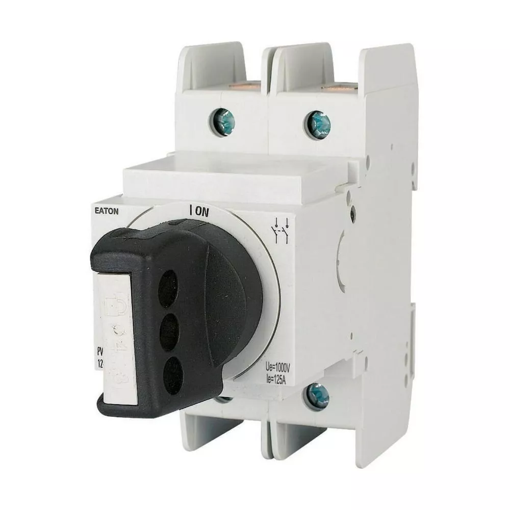 Photovoltaik-Trennschalter, kompakte Bauweise, bis 1000 V mit nur 54 mm Breite (3 TE), erhöhte Sicherheit aufgrund des unabhängigen manuellen Betriebs, stabile Leistung zu jeder Zeit, polaritätsunabhängig, geringere Verlustleistung durch weniger Pole, DC, 1000 V, 16 A, Drehgriff, IEC 60947-3 DC-PV1&2