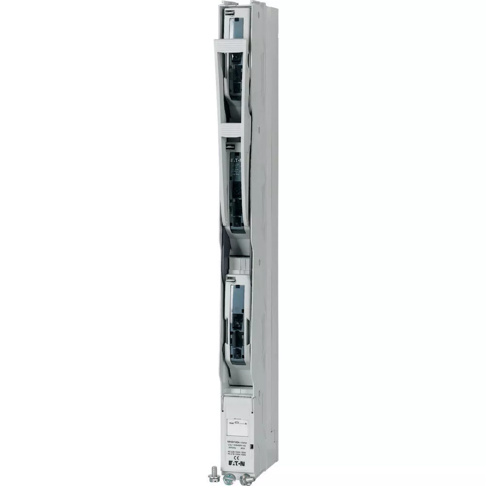 NH-Sicherungslast-Schaltleiste 3-polig ohne Sicherungsüberwachung, Größe NH00, Lieferung ohne NH-Sicherungseinsätze, vertikale Einbaulage möglich, das Gerät ist universell für Kabelabgang oben/unten geeignet, Entspricht der Normen nach IEC 60947-1:2007 + A1:2010 und IEC 60947-3:2008 + A1:2012