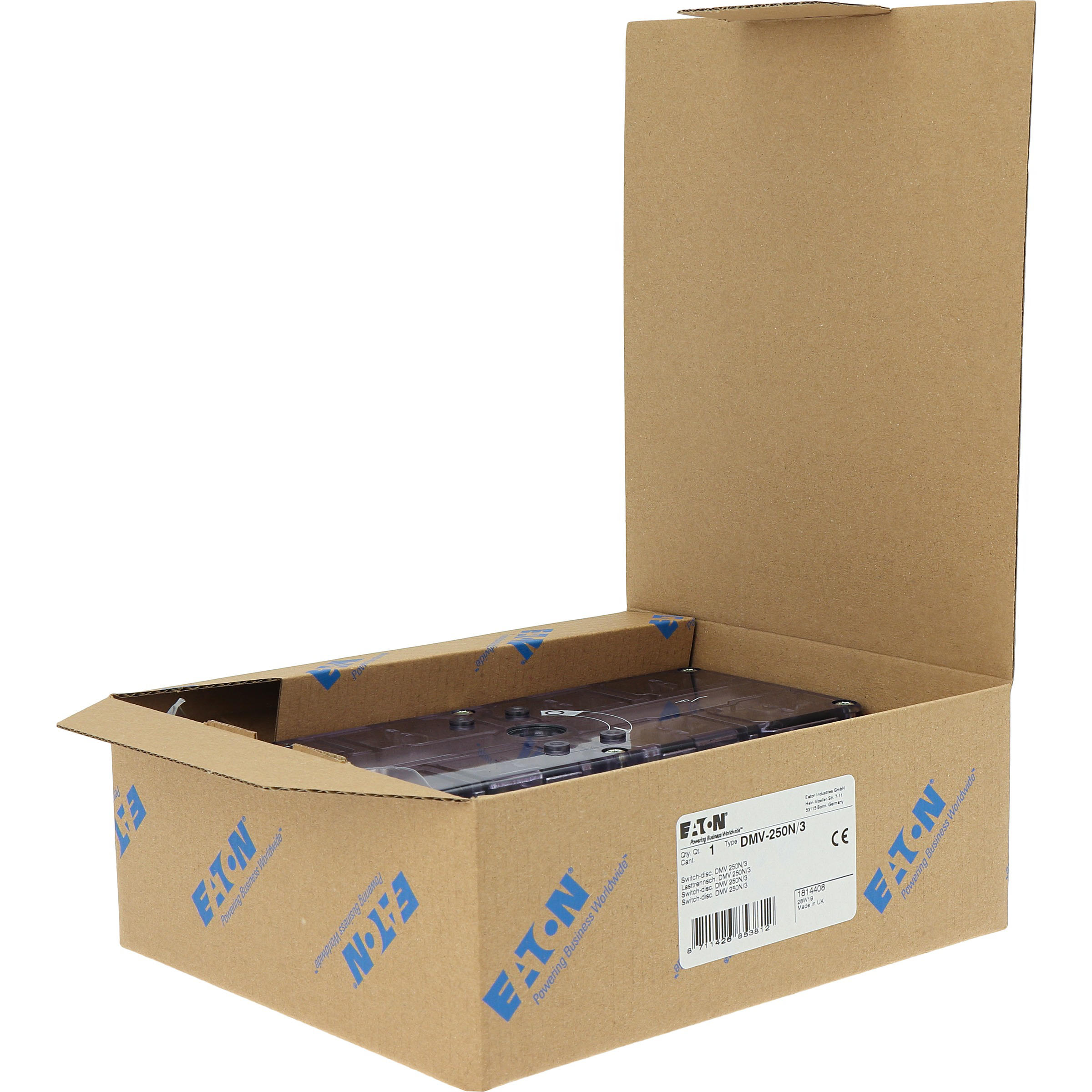 Rozłącznik izolacyjny, Zacisk śrubowy: Rozłącznik izolacyjny, Wyłącznik główny, wyłącznik serwisowy, Odniesienie grupy części DMV, Funkcja zatrzymania: opcjonalnie, Bez uchwytu obrotowego i wałka napędowego, Uwagi: widoczne styki, Informacje dotyczące dostarczonego sprzętu: styk pomocniczy montowany przez użytkownika., z wyposażeniem do przyłączania, 3-biegunowy, Stopień ochrony: IP00, IP20 z osłoną zacisków, Projekt: montaż powierzchniowy, Moc znamionowa AC-23A, 50 - 60 Hz 400 V: P = 147 kW, Znamionowy prąd ciągły: Iu = 250 A, Normy: IEC/EN 60947, VDE 0660, IEC/EN 60204, Rozłącznik izolacyjny zgodnie z normą IEC/EN 60947-3