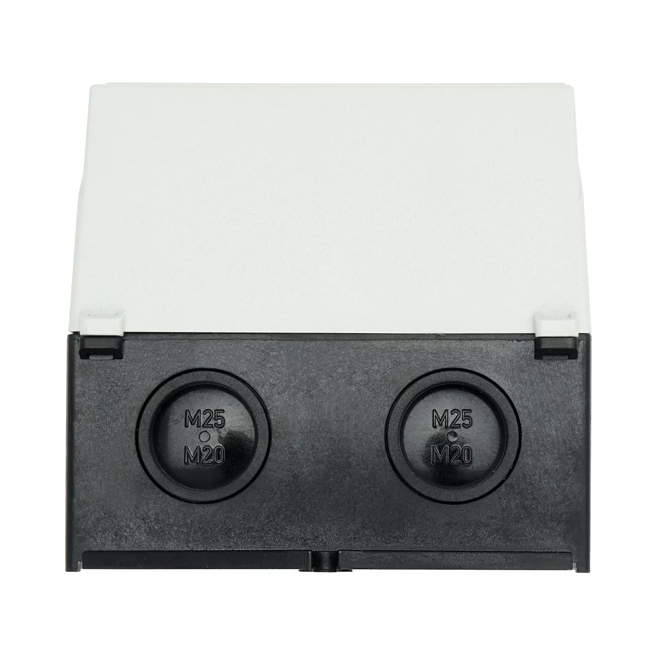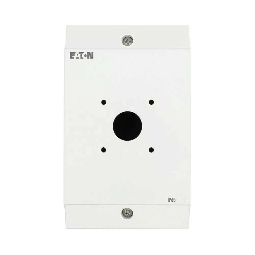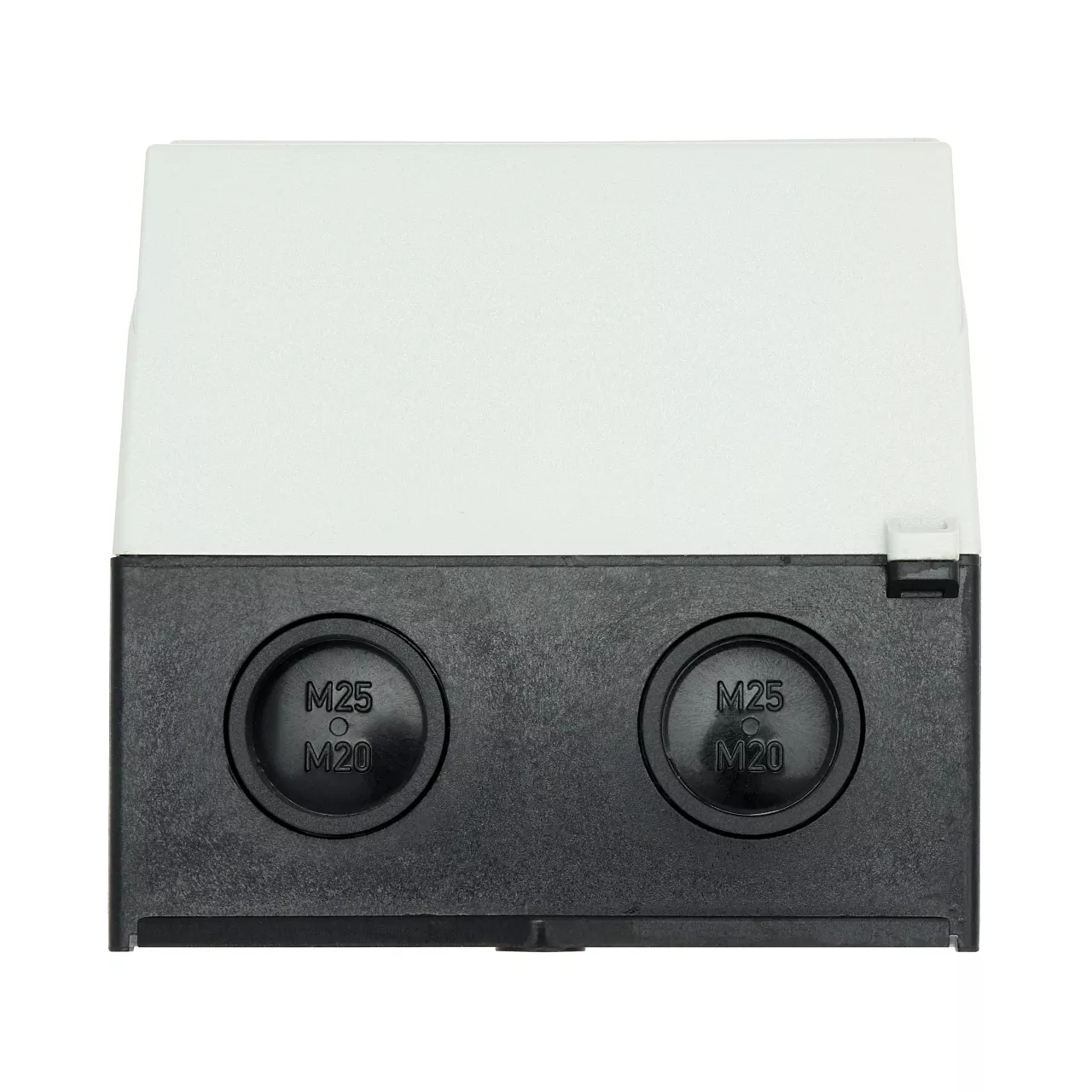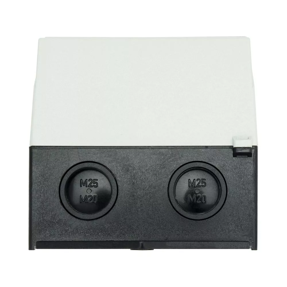 Mała obudowa, stopień ochrony IP65, poliwęglan wzmocniony włóknem szklanym, dolna część obudowy RAL 9005, czarny/górna część obudowy RAL 7035, kolor jasnoszary, przebicie sztywne na wprowadzenie kabli metrycznych na górze, na dole, w płycie tylnej, z wstępnie zmontowanym ekranem płyty montażowej, do przełączników T0-../Z, 2 jednostki stykowe