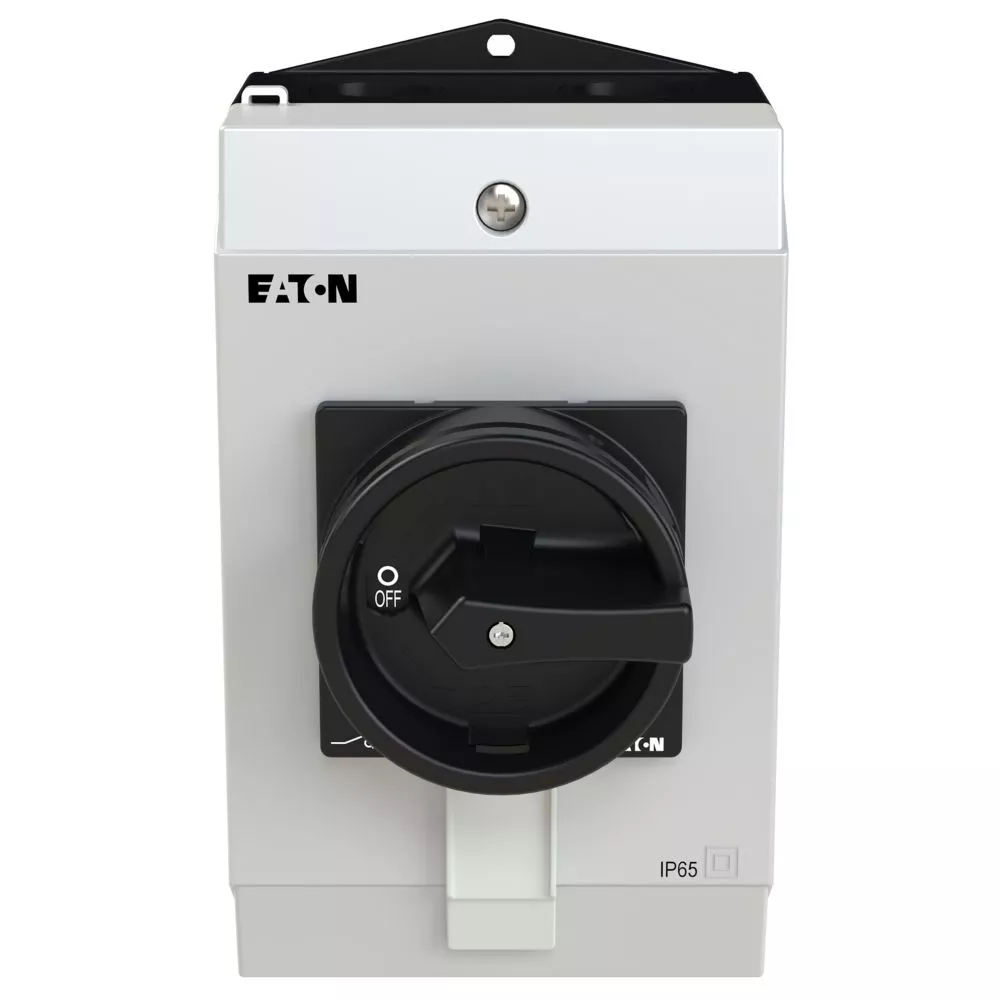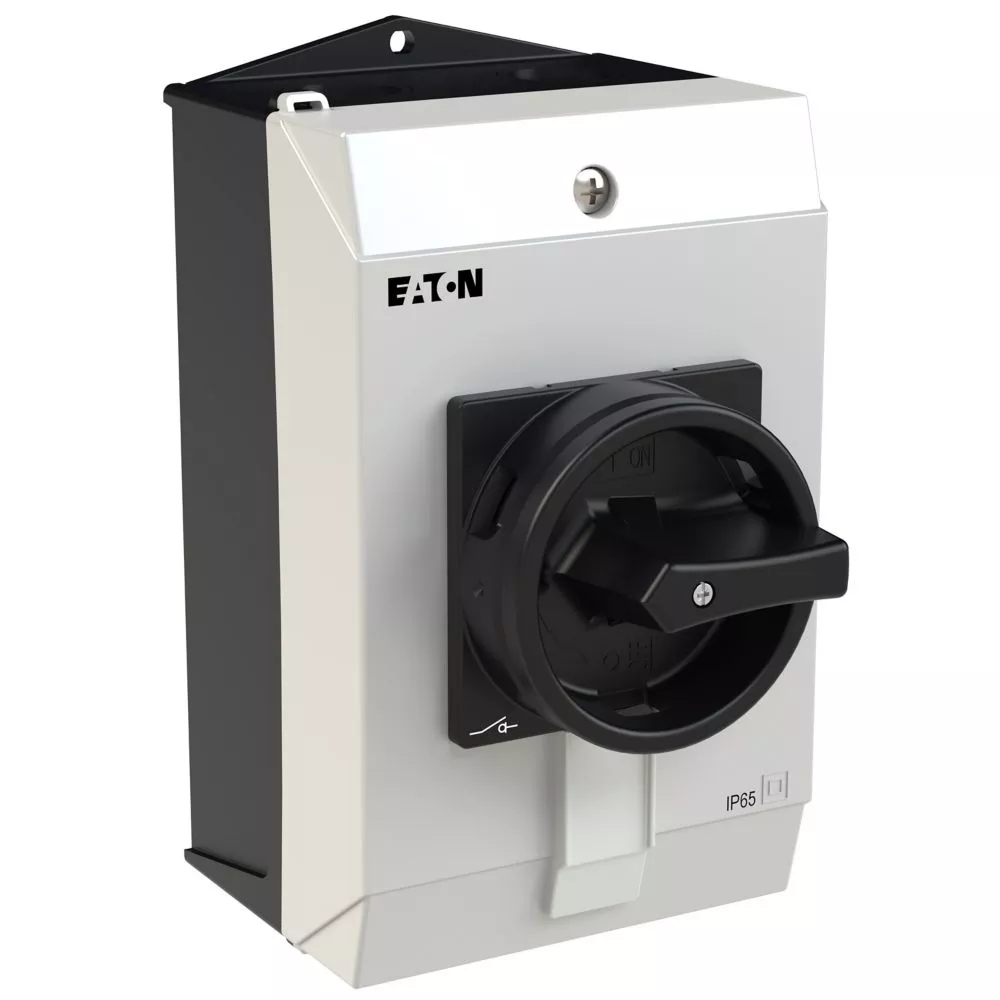 Wyłącznik główny, P1, Znamionowy prąd ciągły (Iu): 25 A, Funkcje: Funkcja STOP, Z mechanizmem ryglującym, Wyposażone w: Arkusz poglądowy montażu, Czarny uchwyt obrotowy i pierścień blokujący, Sposób montażu: Montaż powierzchniowy, Liczba biegunów: 3-bieg., Element blokujący: Możliwość zablokowania w położeniu 0 (Wył.), Stopień ochrony: NEMA 12