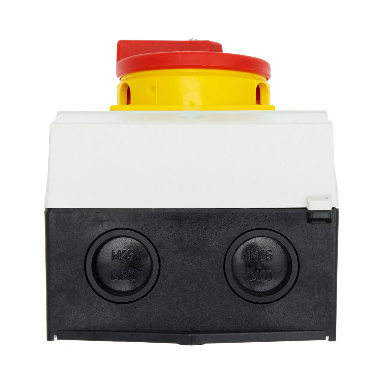 P1-25/I2H/MBS/SVB/HI11 Rozłącznik główny, 3 bieg.+1NO+1NC, 25A, funkcja awaryjnego zatrzymania, blok. na kłódkę w pozycji Wył., w obudowie ze szkła utwardzanego, z płytą ekranującą MBS, pokrętło czerwono-żółte z blokadą na kłódkę