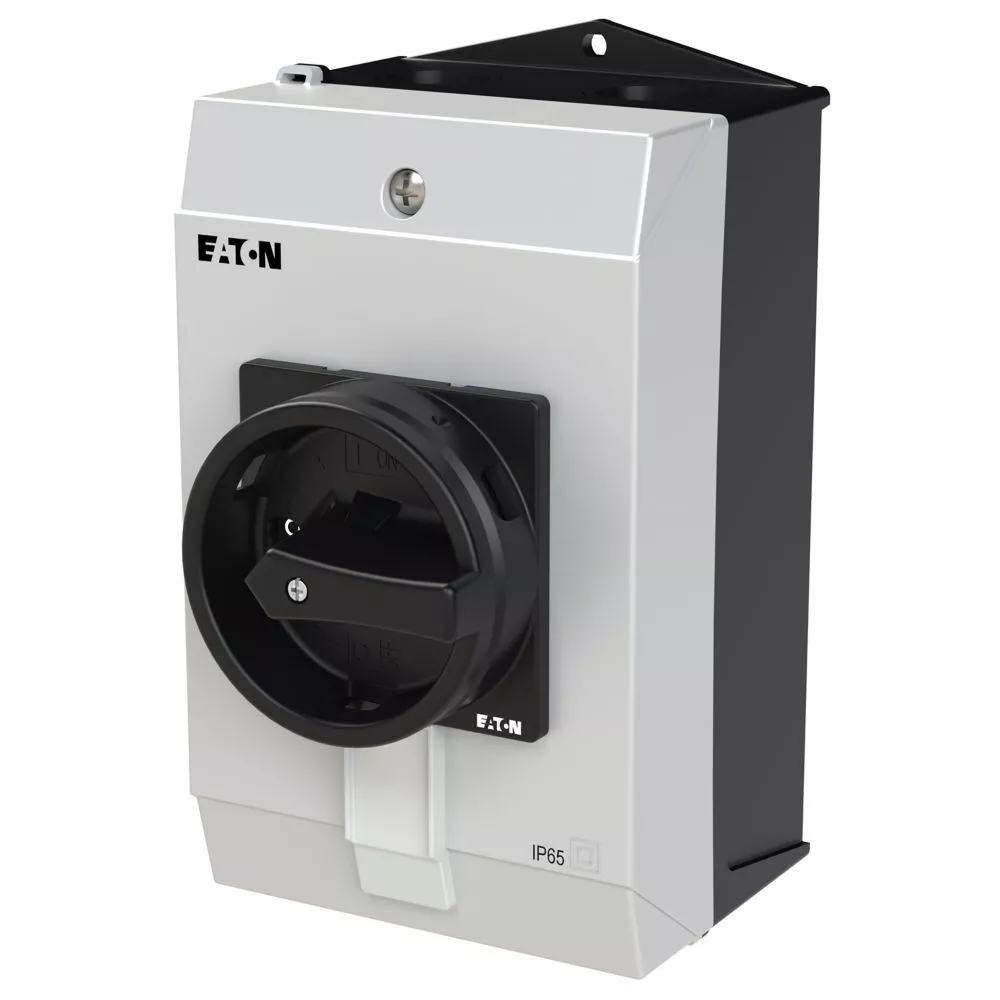 Wyłącznik główny, P1, Znamionowy prąd ciągły (Iu): 32 A, Funkcje: Z mechanizmem ryglującym, Funkcja STOP, Wyposażone w: Czarny uchwyt obrotowy i pierścień blokujący, Arkusz poglądowy montażu, Sposób montażu: Montaż powierzchniowy, Liczba biegunów: 3-bieg., Element blokujący: Możliwość zablokowania w położeniu 0 (Wył.), Stopień ochrony: NEMA 12
