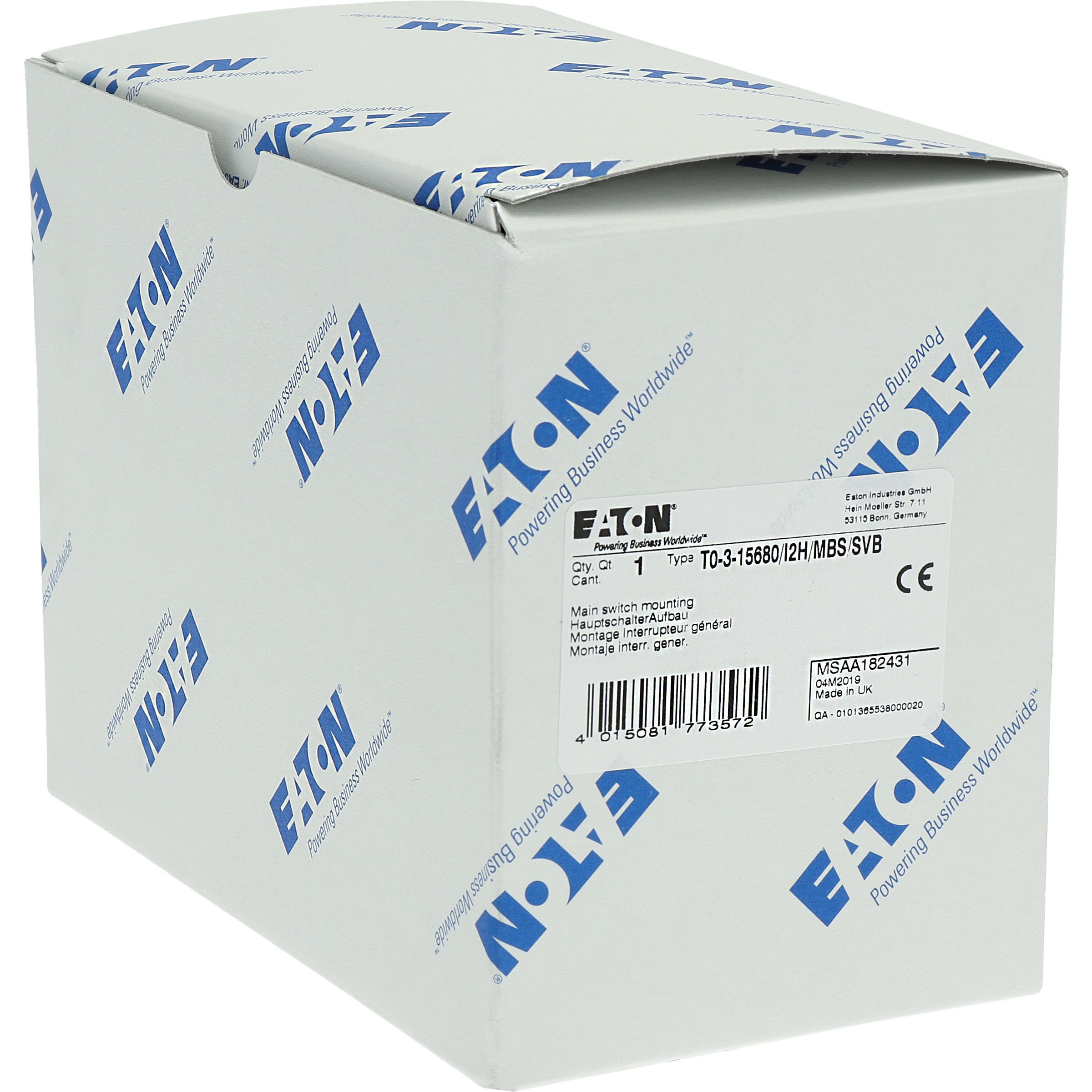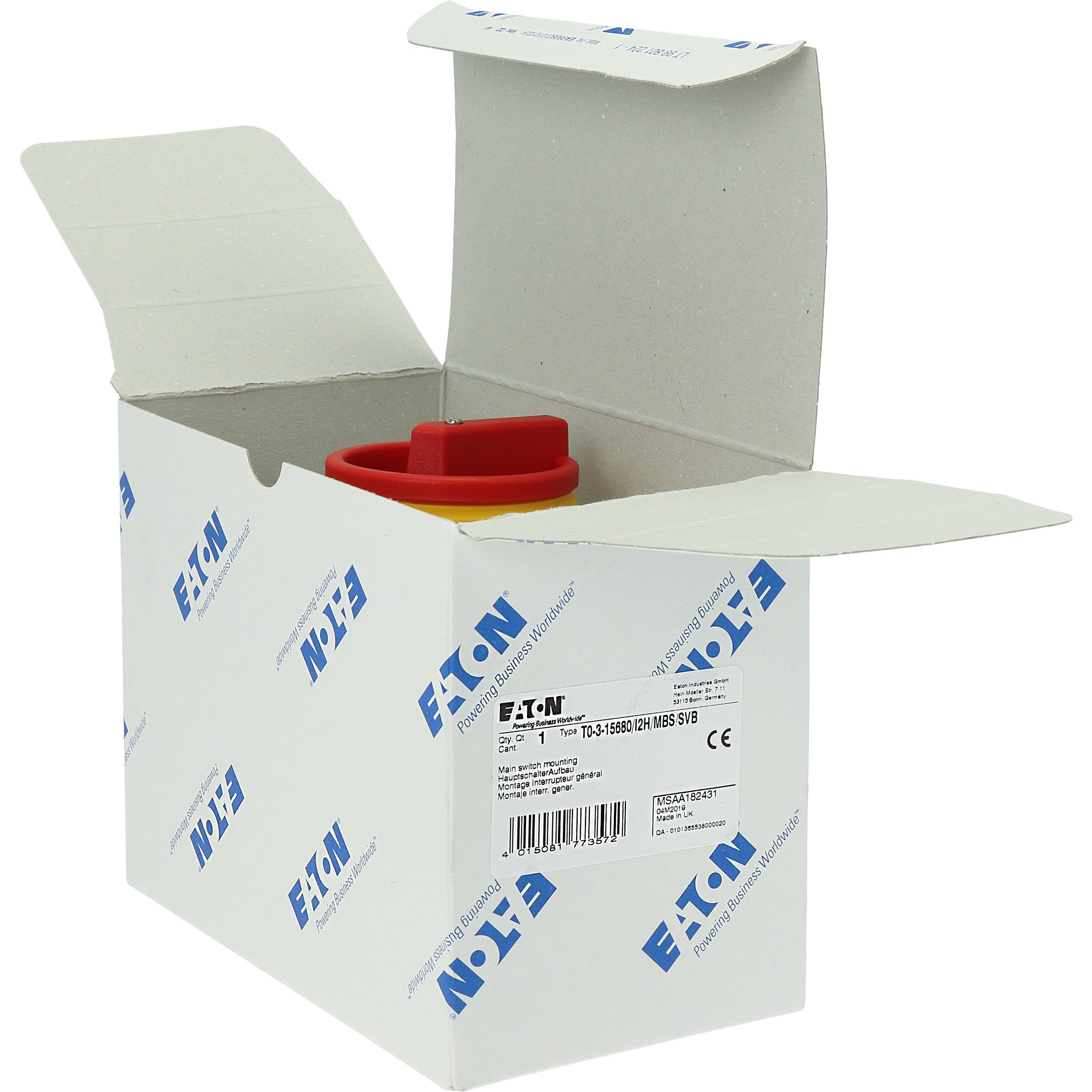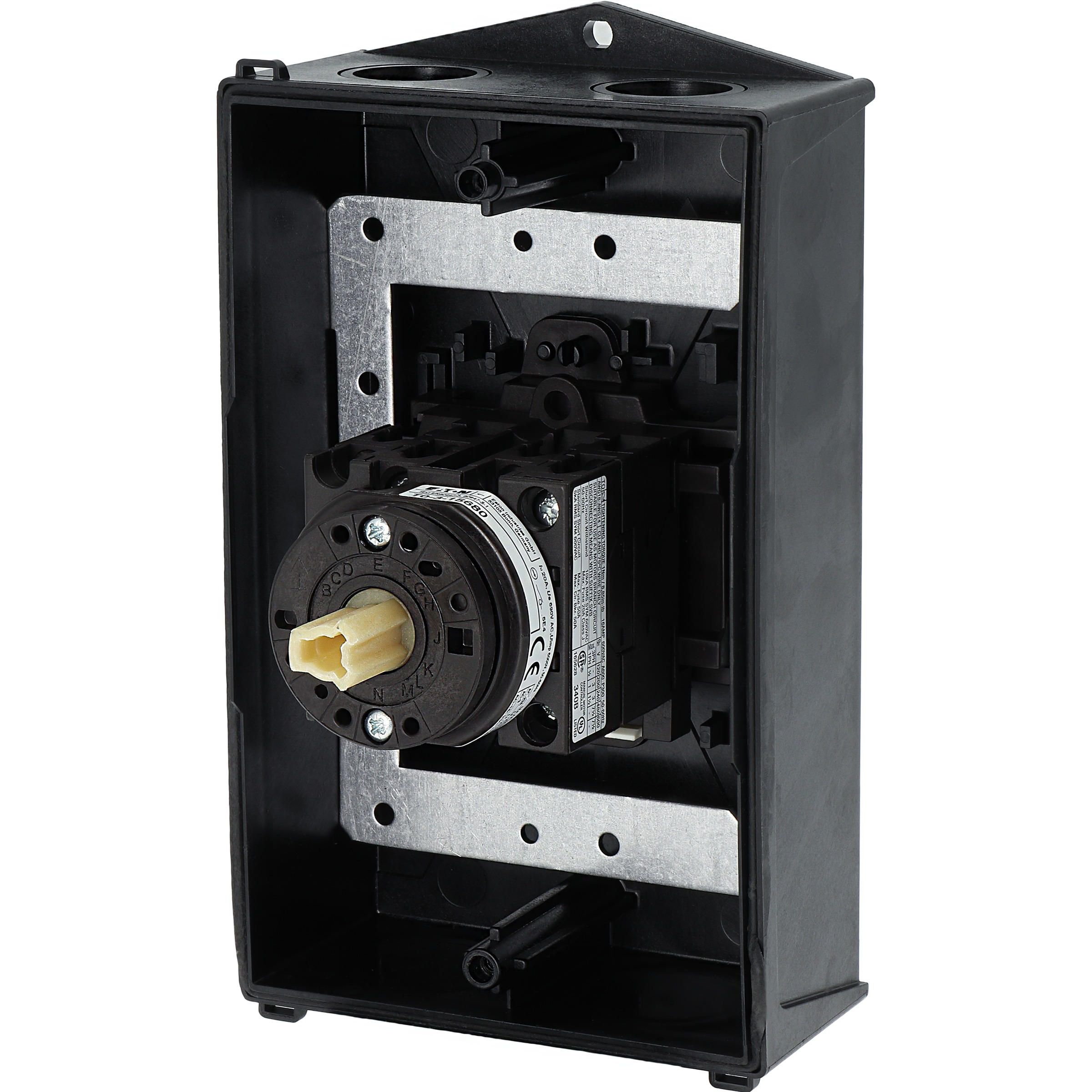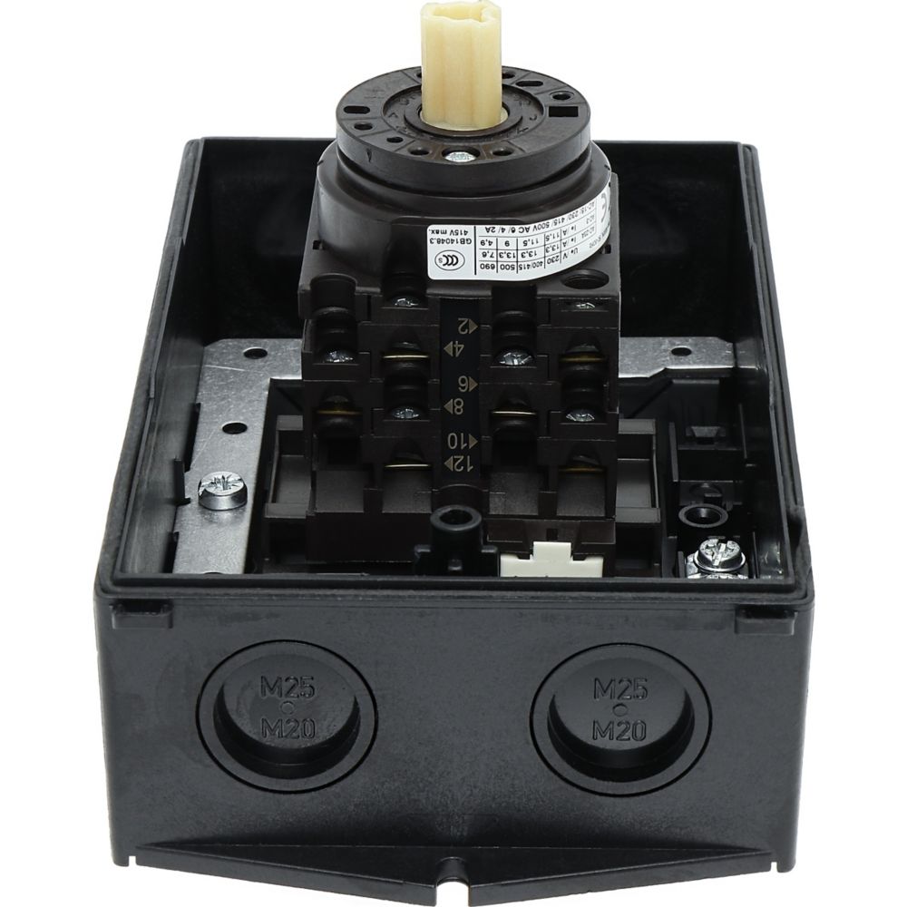 Wyłącznik główny, Zacisk śrubowy: Wyłącznik główny, wyłącznik serwisowy, Wyłącznik naprawczy, Odniesienie grupy części T0, Funkcja zatrzymania: Funkcja wyłączania awaryjnego, z czerwonym uchwytem obrotowym i żółtym pierścieniem blokującym, Uwagi: wersja z otworami do wyłamywania, z arkuszem poglądowym montażu, 3-biegunowy + N, Element blokujący: Możliwość zablokowania w położeniu 0 (Wył.), Stopień ochrony: IP65, Projekt: montaż powierzchniowy, Kąt przełączania: 90°, Moc znamionowa AC-23A, 50 - 60 Hz 400 V: P = 5,5 kW, Znamionowy prąd ciągły: Iu = 20 A, 3 zespoł montażowy, Normy: IEC/EN 60947, VDE 0660, IEC/EN 60204, Rozłącznik izolacyjny zgodnie z normą IEC/EN 60947-3