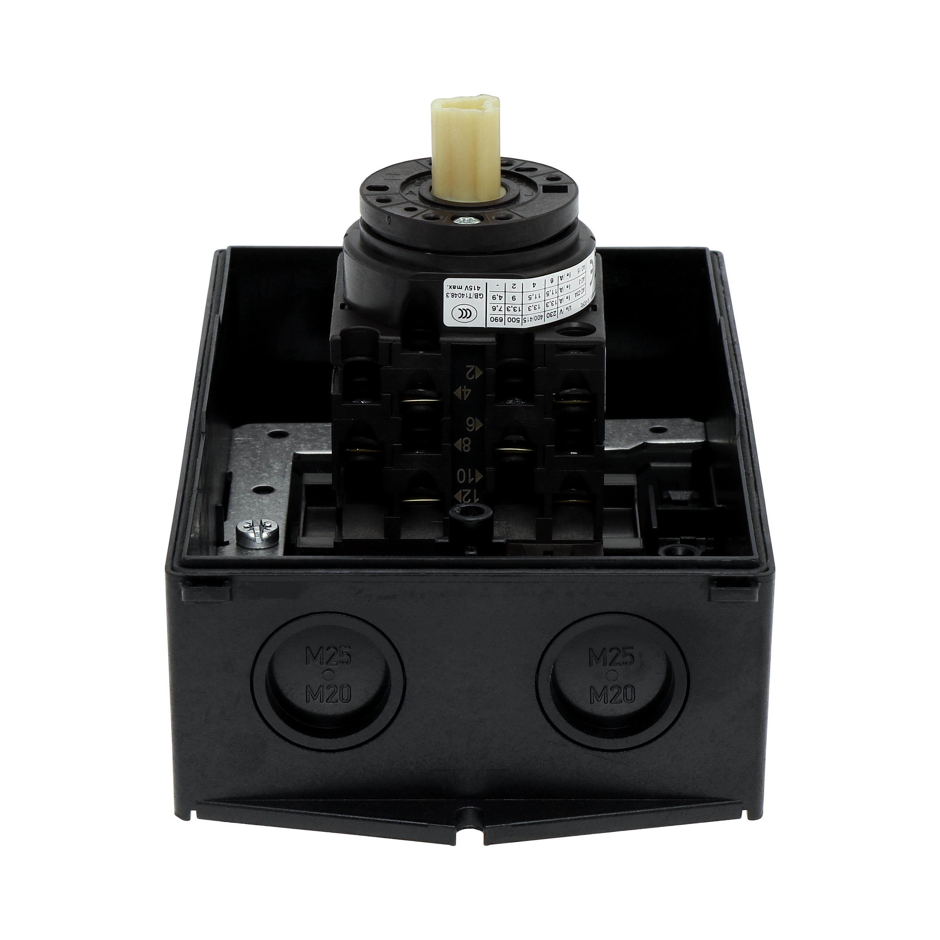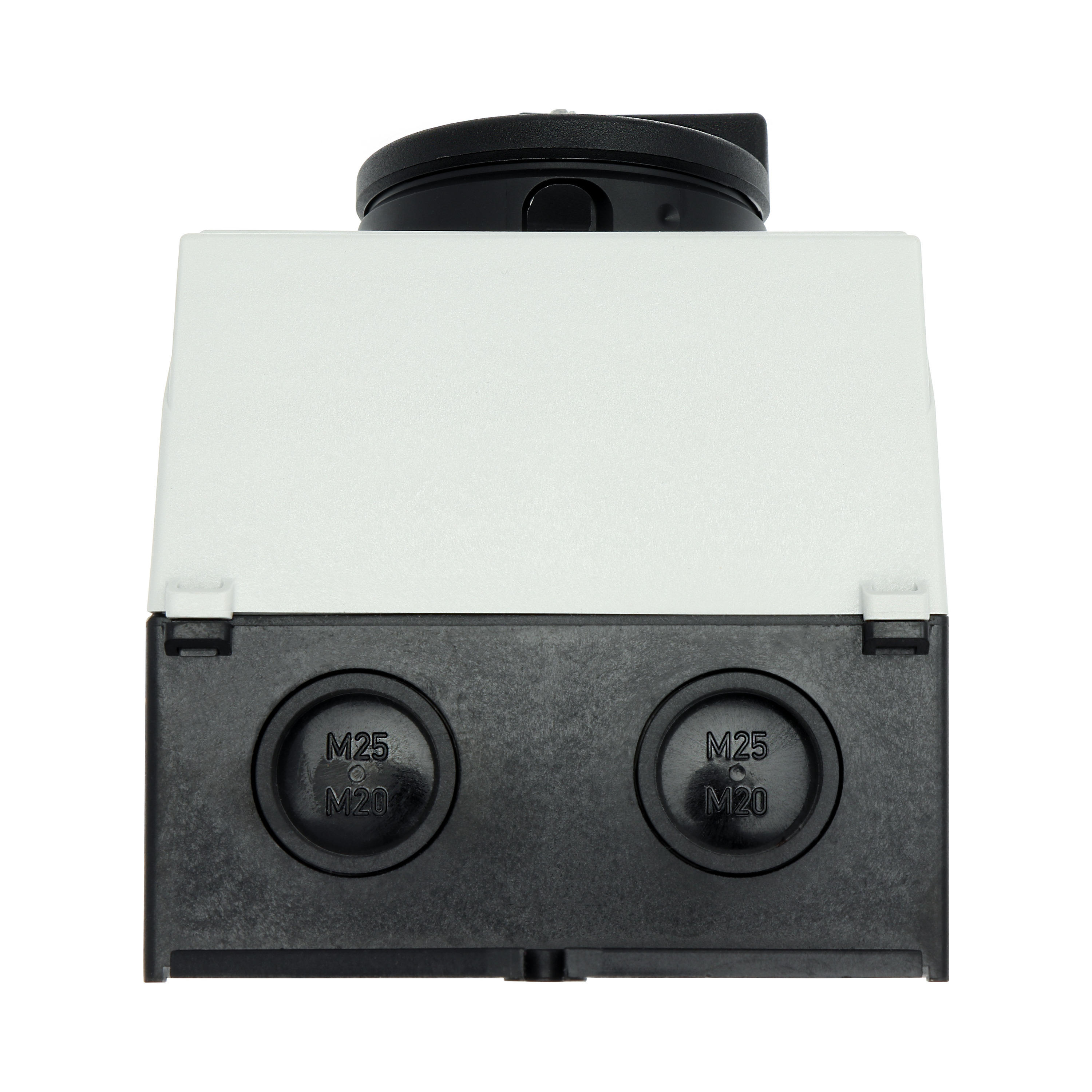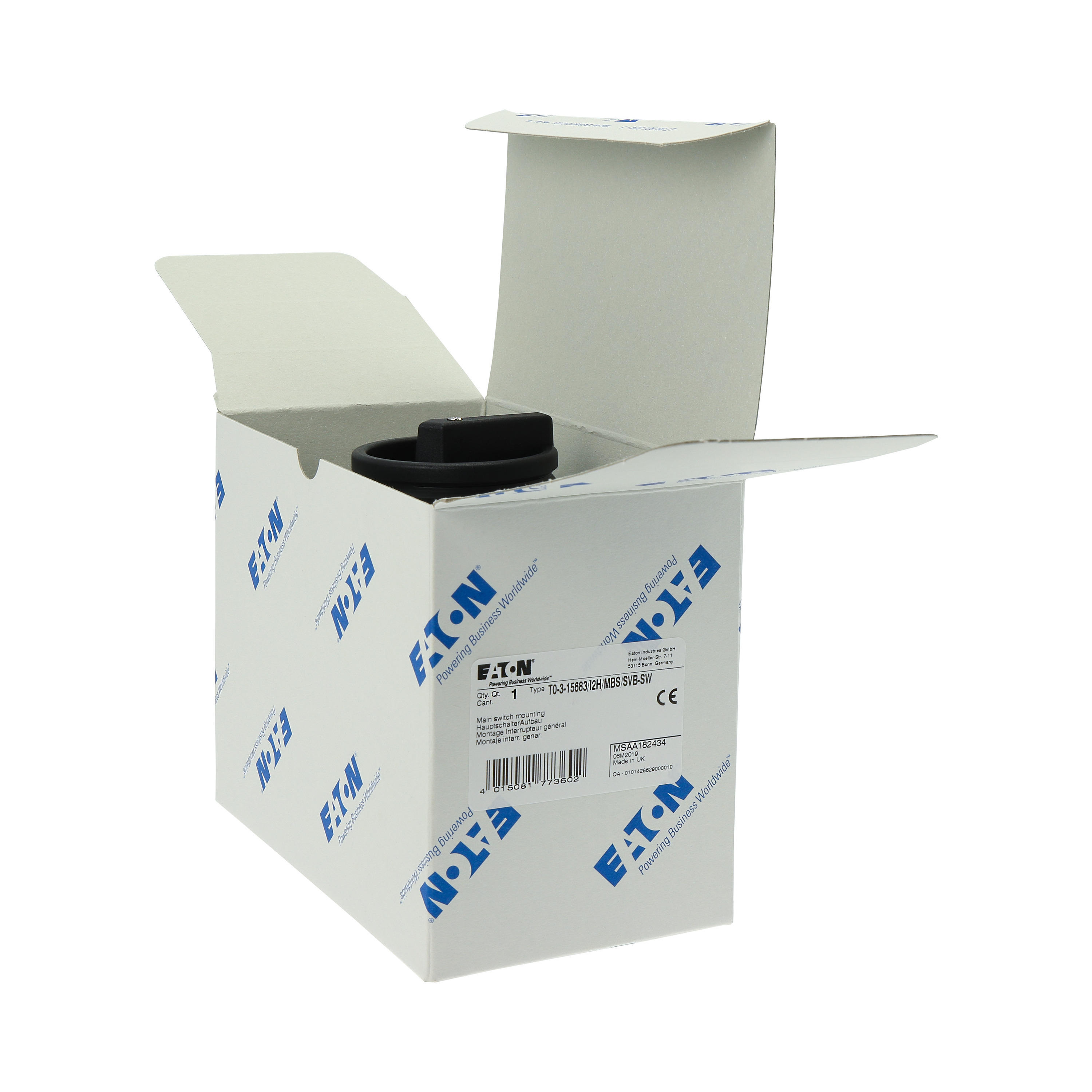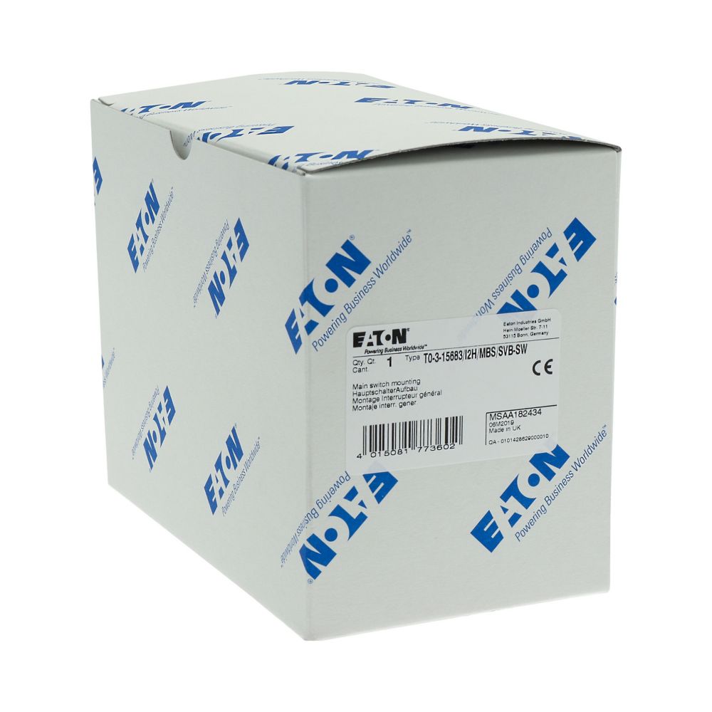 T0-3-15683/I2H/MBS/SVB-SW Rozłącznik główny, 3 bieg.+2NO+1NC, 20A, funkcja awaryjnego zatrzymania, blok. na kłódkę w pozycji Wył., 90°, w obudowie ze szkła utwardzanego, z płytą ekranującą MBS, pokrętło czarne z blokadą na kłódkę