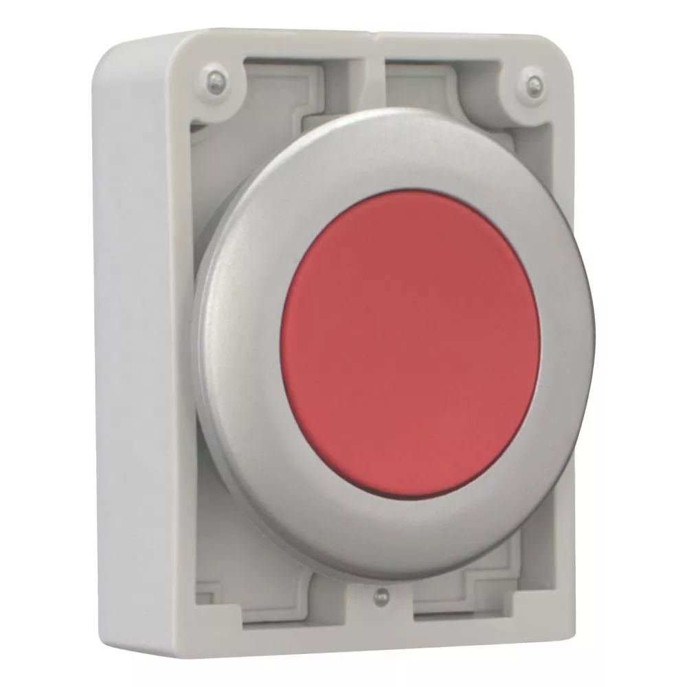 Przycisk, Zacisk śrubowy: RMQ-Titan, Urządzenie pojedyncze, Projekt: Płaski, z samopowrotem, wkładka przycisku: czerwony, Wkładka przycisku Pusta, Stopień ochrony: IP66, IP67, IP69K, Ramka metalowa, Podłączanie do SmartWire-DT: tak, z przyłączami SWD-RMQ, Wymiary przedniej części: Ø 36 x 3 mm, Normy: IEC/EN 60947, VDE 0660