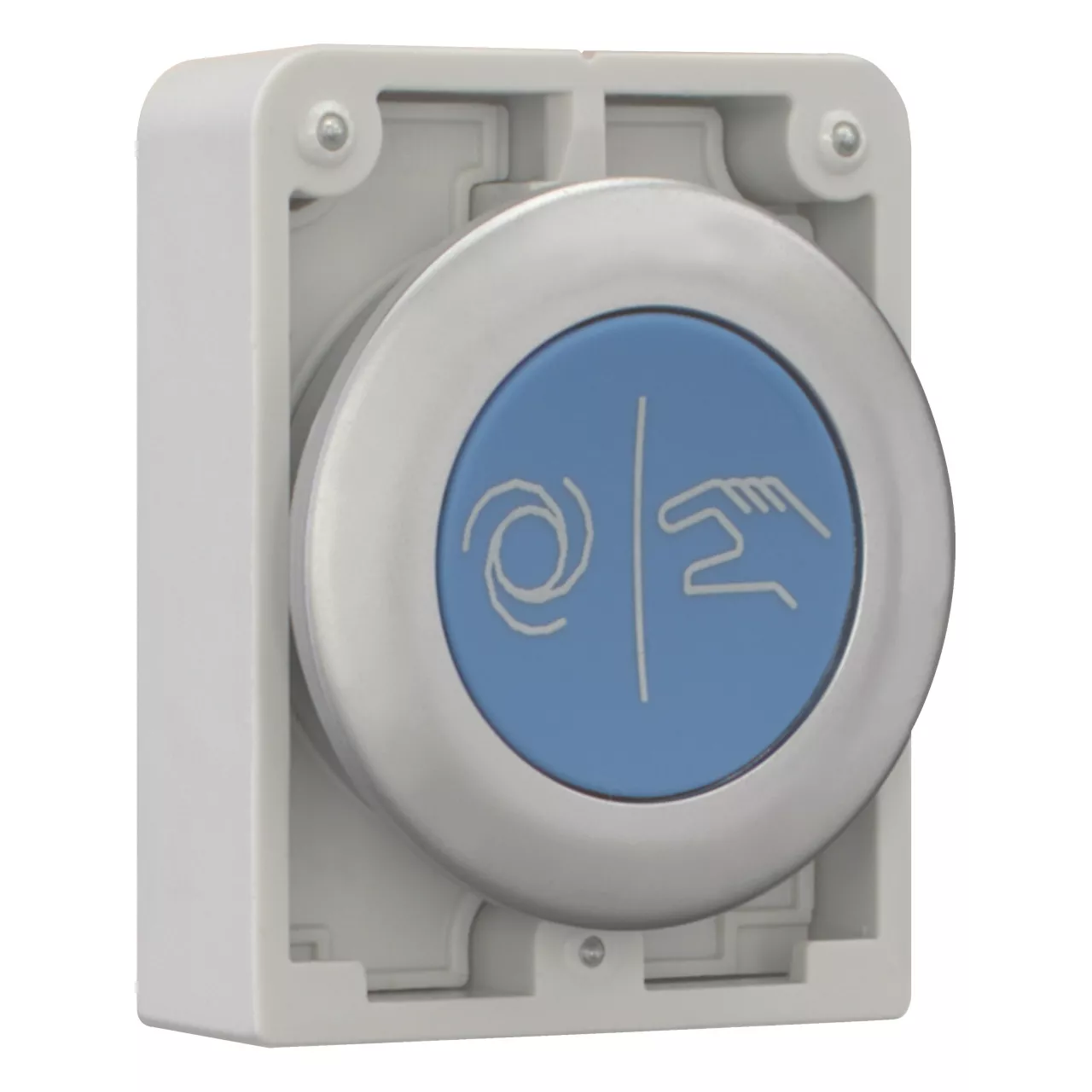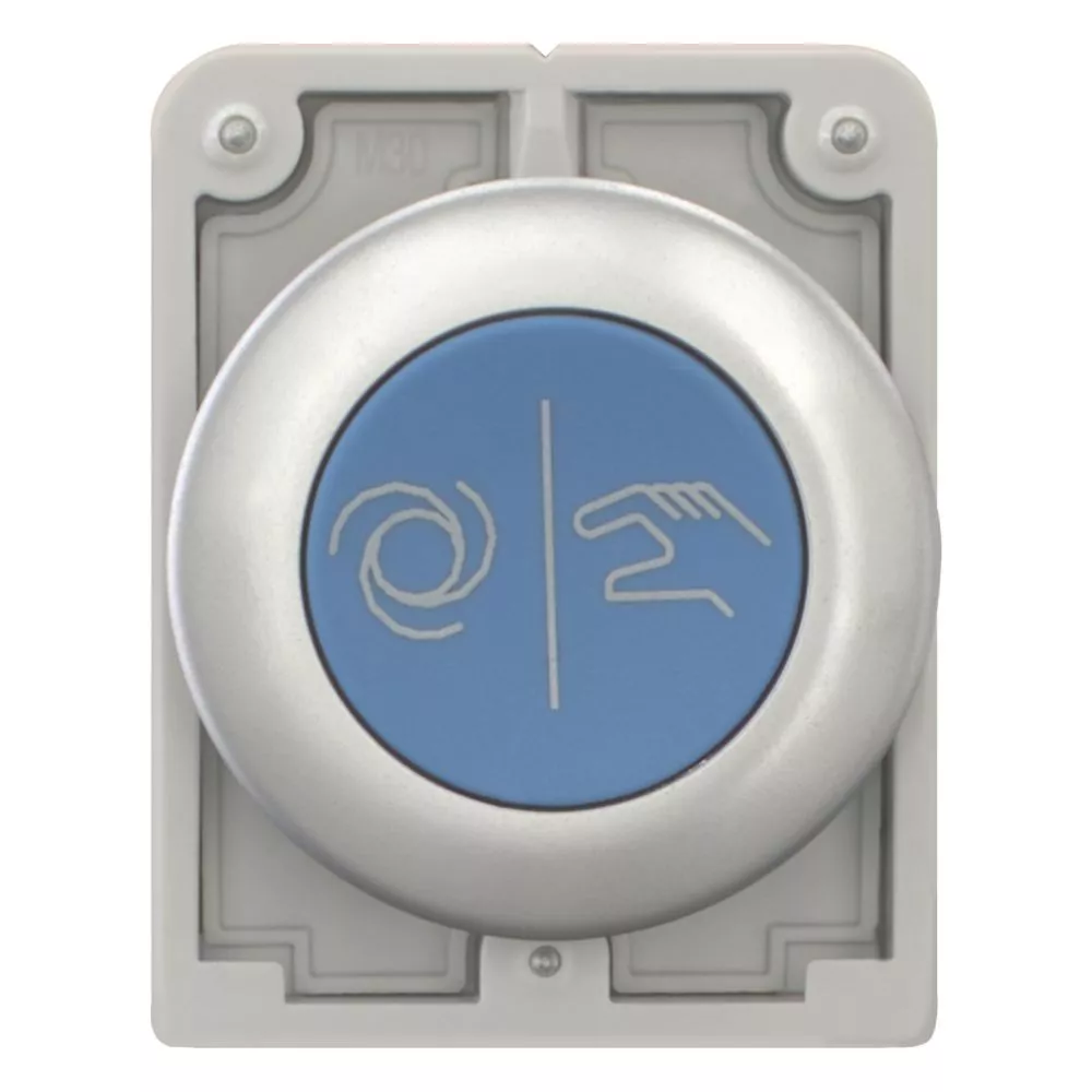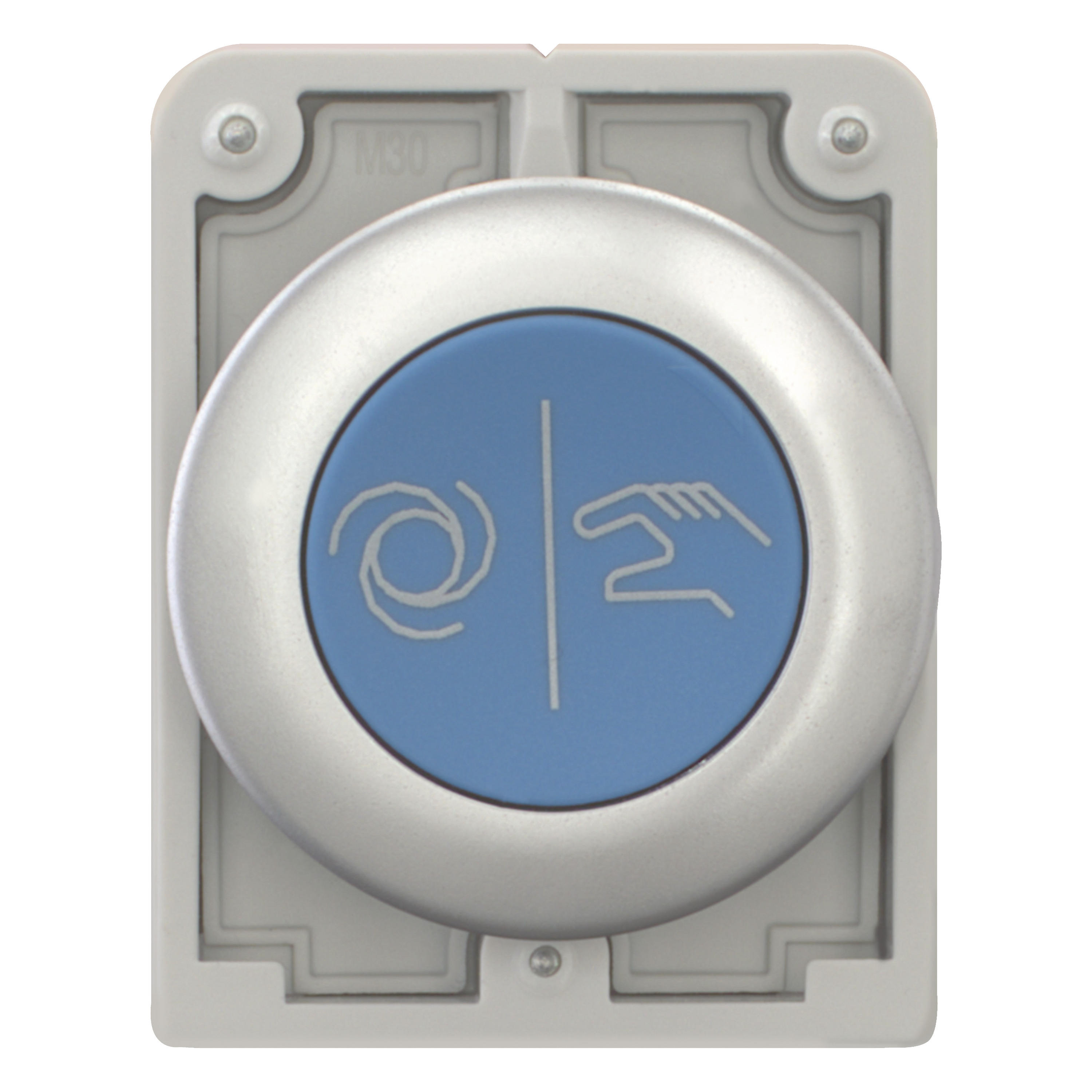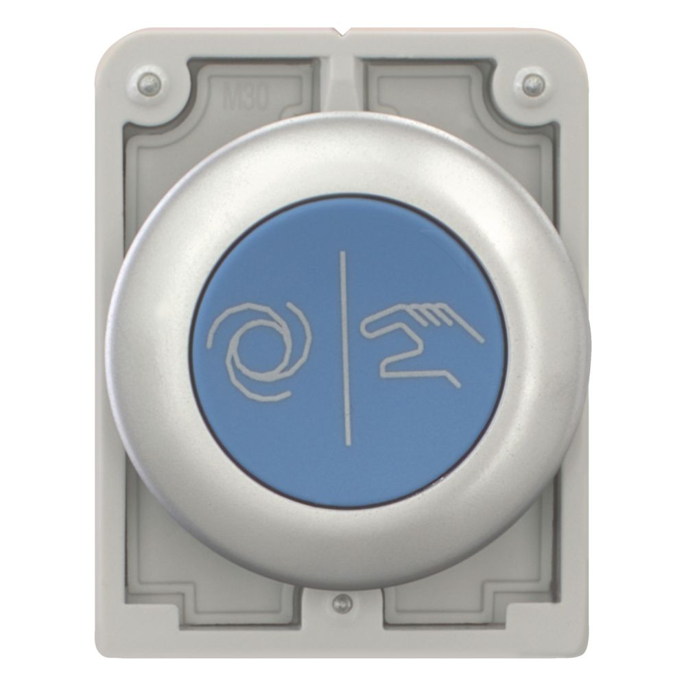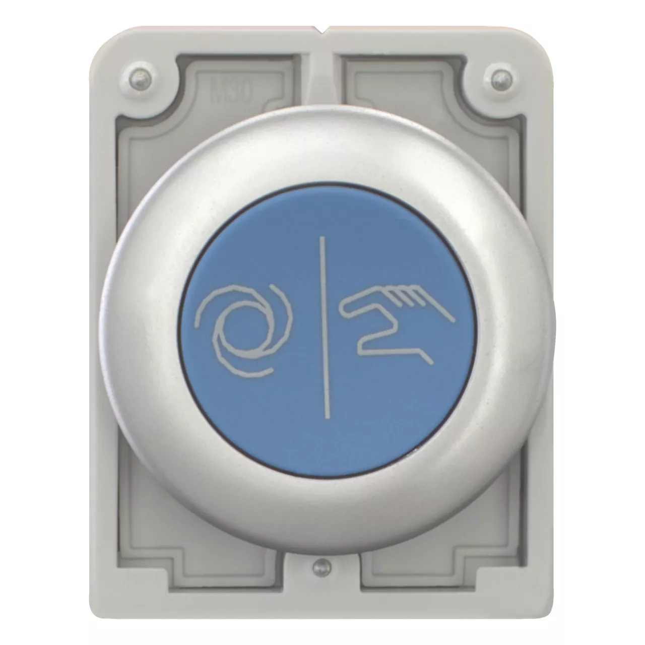 Przycisk, Zacisk śrubowy: RMQ-Titan, Urządzenie pojedyncze, Projekt: Płaski, z samopowrotem, wkładka przycisku: Niebieski, Wkładka przycisku podpisana, Stopień ochrony: IP66, IP67, IP69K, Ramka metalowa, Podłączanie do SmartWire-DT: tak, z przyłączami SWD-RMQ, Normy: IEC/EN 60947, VDE 0660