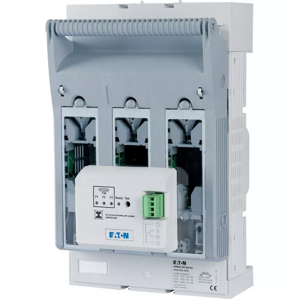 NH-Sicherungs-Lasttrennschalter 3-polig mit M10 Flachanschluss max. 150 mm²; Montageplatte; elektronische Sicherungsüberwachung; für Sicherungseinsätze NH1; SmartWire-ready mit XNH...-SWD-KIT