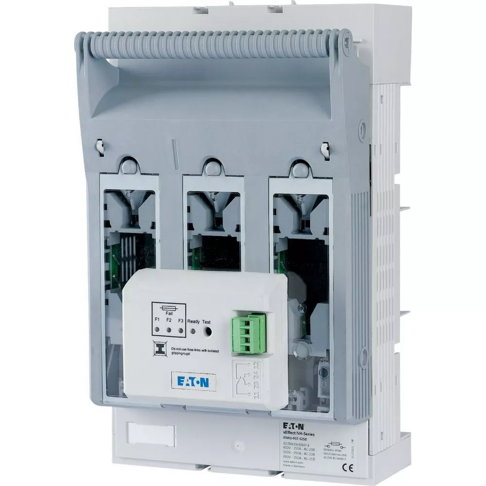 NH-Sicherungs-Lasttrennschalter 3-polig mit M10 Flachanschluss max. 150 mm²; Sammelschiene 60 mm; elektronische Sicherungsüberwachung; für Sicherungseinsätze NH1; SmartWire-ready mit XNH...-SWD-KIT; Kabelanschluss oben/unten in Sekundenschnelle umbaubar.