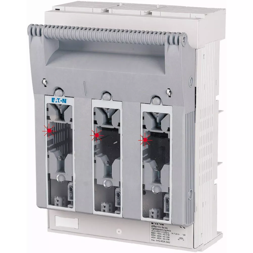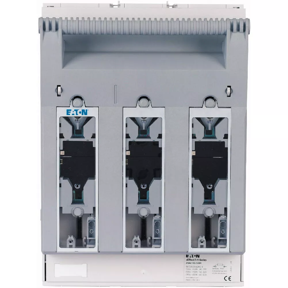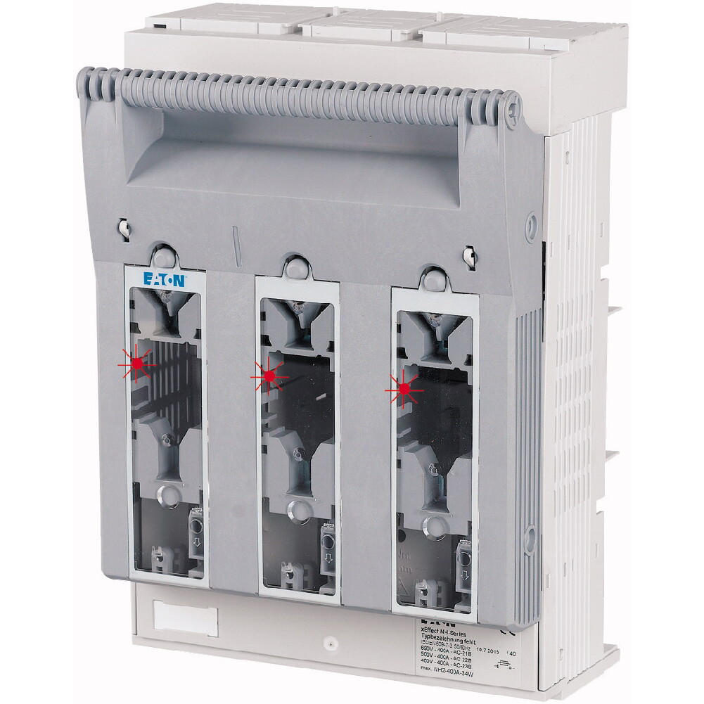 NH-Sicherungs-Lasttrennschalter 3-polig mit M10 Flachanschluss max. 240 mm²; Sammelschiene 60 mm; Sicherungsüberwachung Light mit LED; für Sicherungseinsätze NH2; optional mit XNH-XLOCK und Vorhängeschloss abschließbar; Kabelanschluss oben/unten in Sekundenschnelle umbaubar.