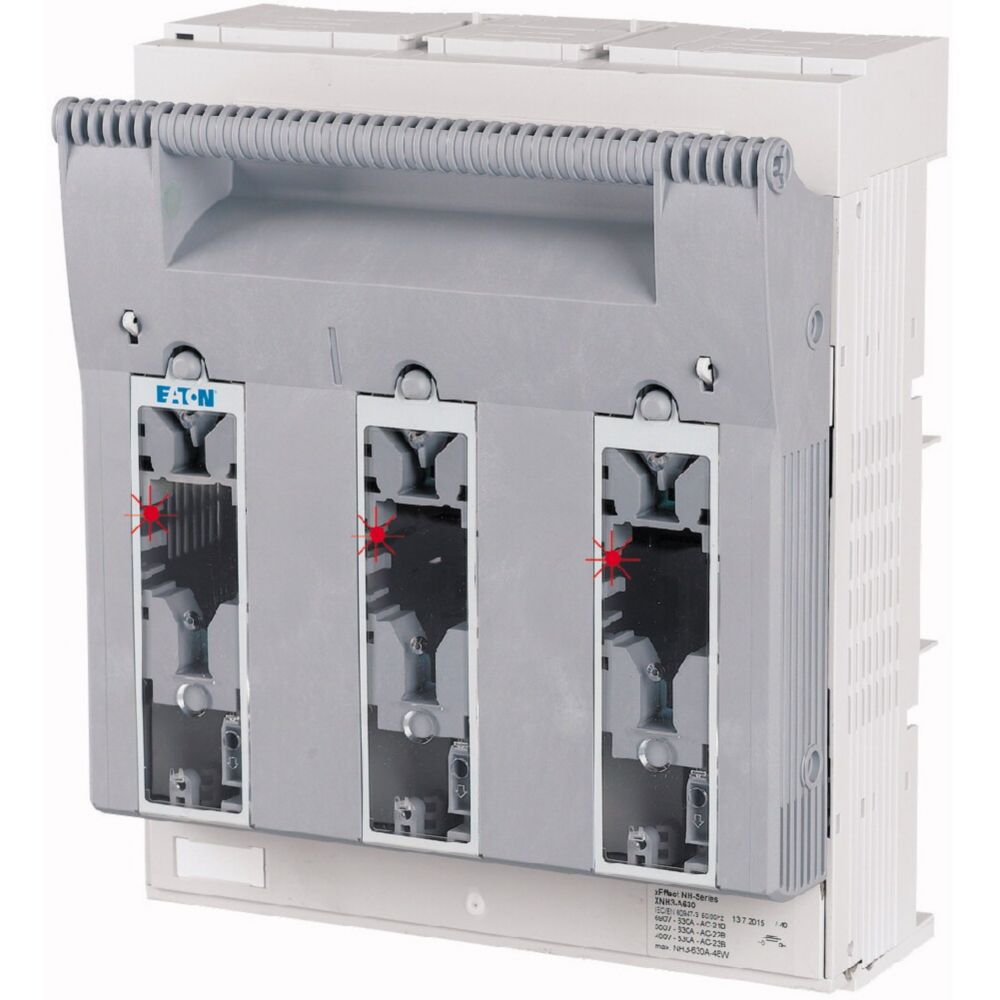 NH-Sicherungs-Lasttrennschalter 3-polig mit Flachanschluss M10 max. 300 mm²; Montageplatte; Sicherungsüberwachung Light mit LED; für Sicherungseinsätze NH3; optional mit XNH-XLOCK und Vorhängeschloss abschließbar