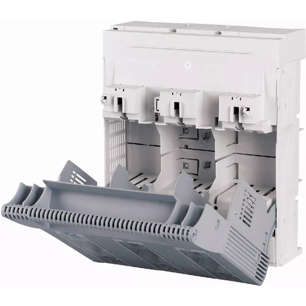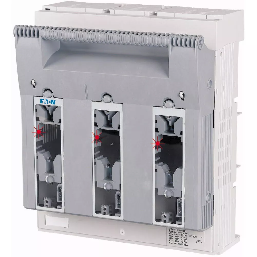 NH-Sicherungs-Lasttrennschalter 3-polig mit M10 Flachanschluss max. 300 mm²; Sammelschiene 60 mm; Sicherungsüberwachung Light mit LED; für Sicherungseinsätze NH3; optional mit XNH-XLOCK und Vorhängeschloss abschließbar; Kabelanschluss oben/unten in Sekundenschnelle umbaubar.