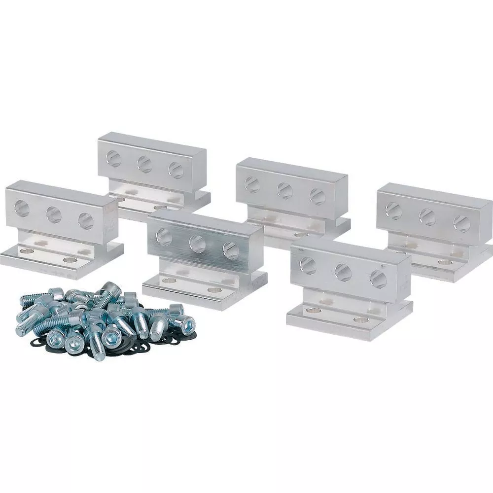 Accessoires, Horizontale en verticale aansluitingen, Cu-rails kunnen rechtstreeks op de flensaansluitingen van de vermogensschakelaar worden aangesloten., Deze connectorset bevat T-vormige adapters voor alle hoofdaansluitingen. Deze adapters kunnen horizontaal of verticaal worden gemonteerd op vermogensschakelaars met een vermogen tot 3.200 A., Nominale stroom In 800 - 3.200 A, Pool 3, Voor gebruik met IZMX40…3…08…, IZMX40…3…10…, IZMX40…3…12…, IZMX40…3…16…, IZMX40…3…20…, IZMX40…3…25…, IZMX40…3…32…, INX40…3…08…, INX40…3…10…, INX40…3…12…, INX40…3…16…, INX40…3…20…, INX40…3…25…, INX40…3…32…