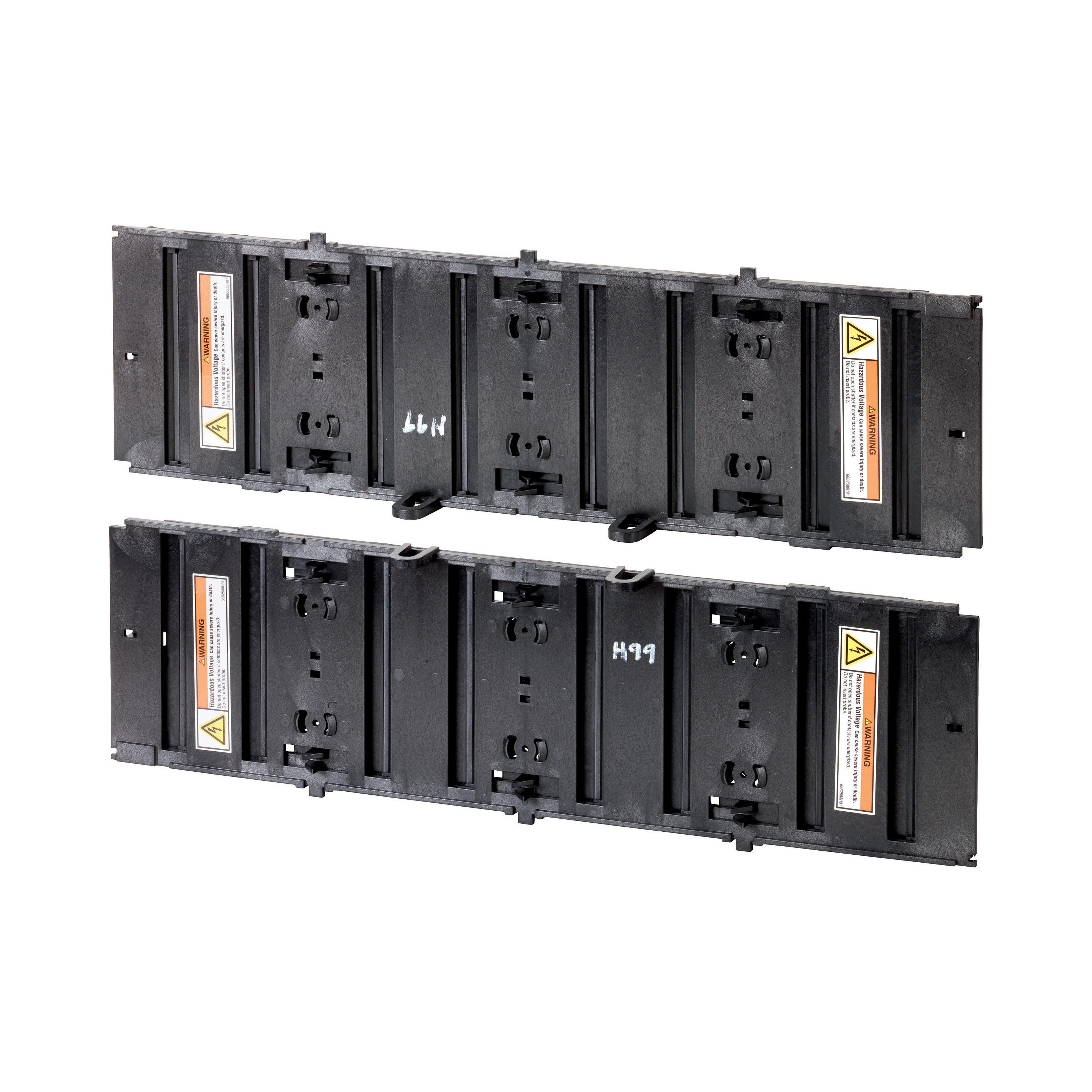 Zusatzausrüstung, Verschlussklappe, Wenn der Leistungsschalter aus seiner angeschlossenen Position herausgezogen wird, Die Blenden decken automatisch die stromführenden Hauptanschlüsse der Kassette ab., Installationsart Einschub, Pole 4, Verwendbar für IZMX-CAS404, für die Ausfahrvorrichtung