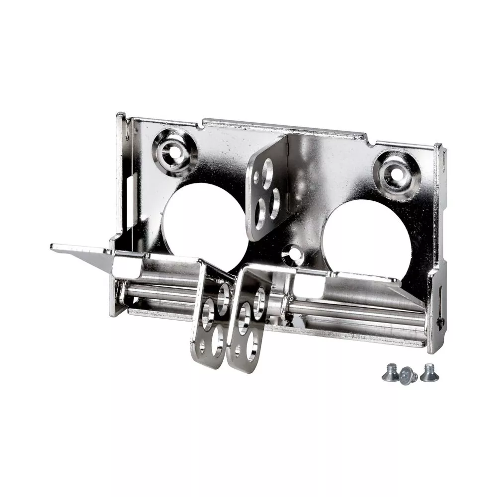 Zusatzausrüstung, Sperre EIN-/AUS-Tasten, Die EIN-/AUS-Schalter der Leistungsschalter können mithilfe der Verriegelung miteinander verriegelt werden. Es ist auch möglich, nur die EIN- oder die AUS-Taste mit einem Vorhängeschloss zu verriegeln. Dadurch kann der Leistungsschalter nicht mehr lokal betätigt werden. Der optionale Fernschaltmechanismus, der eine EIN/AUS-Spule verwendet, wird nicht verriegelt, M =Metall, Material Metall, zur Verwendung mit IZMX16..., INX16..., IZMX40..., INX40...,EIN-AUS, Metall