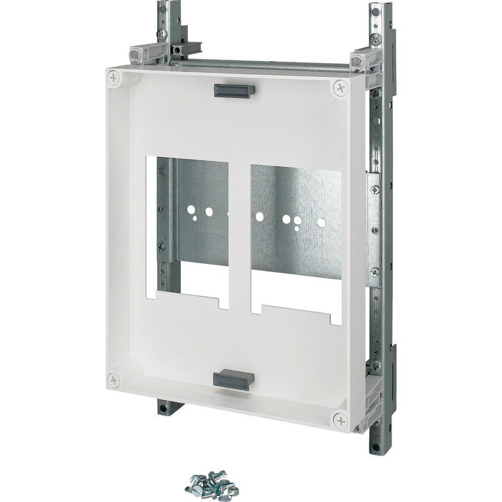 Zestaw montażowy EP…XNH00…, składający się z płyty montażowej i płyty maskującej; do rozłączników bezpiecznikowych NH XNH00 o rozmiarze 160 A; plastikowa płyta maskująca; RAL 9002; płyta montażowa: blacha stalowa (2 mm); ocynkowana; odpowiednia do standardowego systemu instalacji sekcji EP