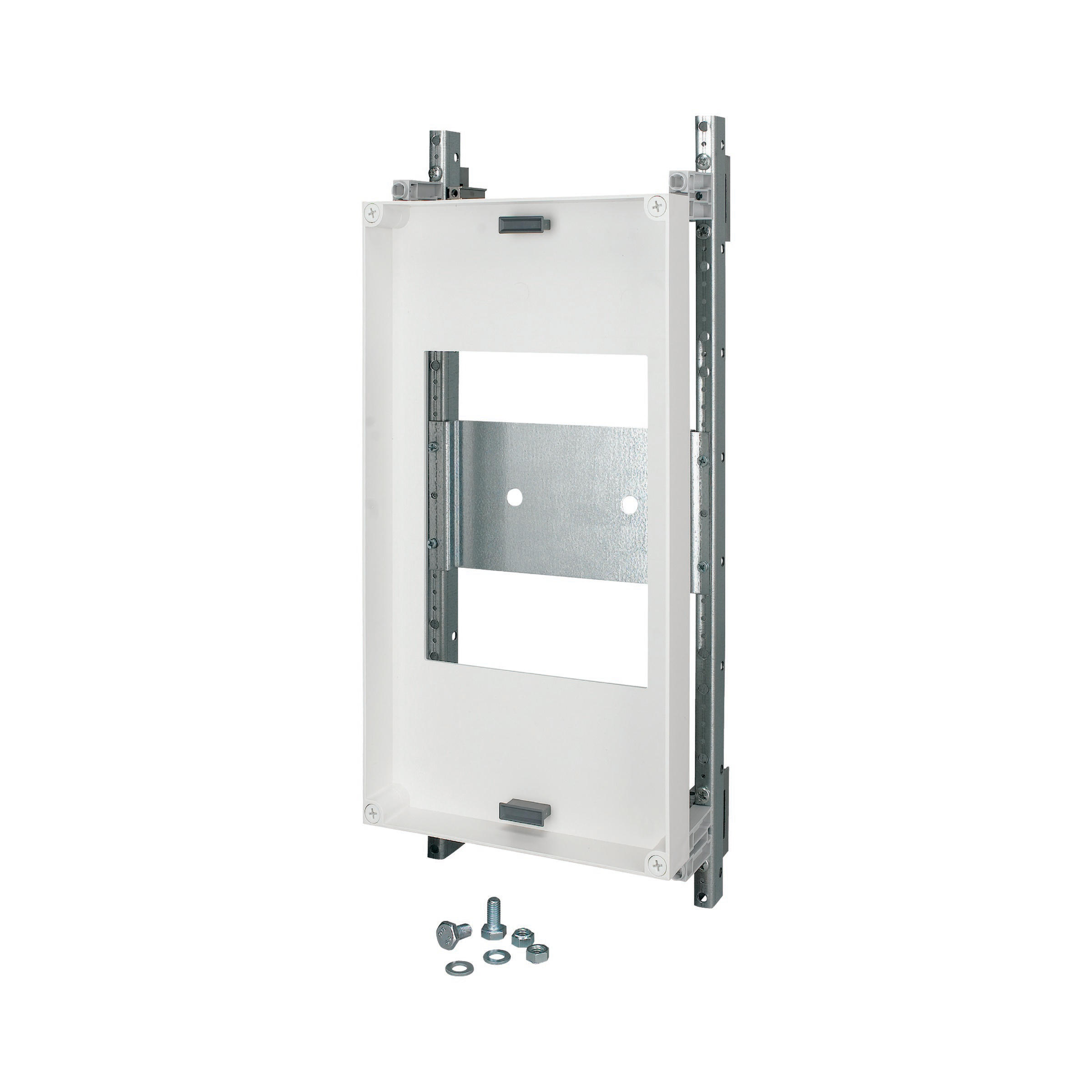 Zestaw montażowy EP…XNH1…, składający się z płyty montażowej i płyty maskującej; do rozłączników bezpiecznikowych NH XNH1 o rozmiarze 250 A; plastikowa płyta maskująca; RAL 9002; płyta montażowa: blacha stalowa (2 mm); ocynkowana; odpowiednia do standardowego systemu instalacji sekcji EP