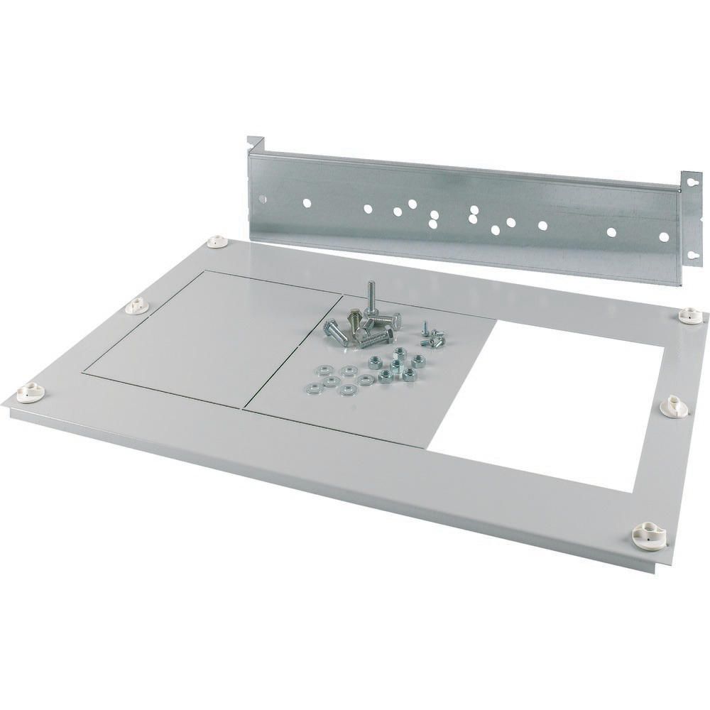 BPZ-XNH2…-MV Montagesatz, bestehend aus Montageplatte und Frontplatte; für NH Sicherungslasttrennschalter XNH2 Größe 400 A; für 800 mm Breite; Höhe = 450 mm; Stahlblech-Frontplatte; pulverbeschichtet; grau; RAL 7035; Montageplatte: Stahlblech (2 mm); verzinkt; geeignet für xEnergy Basic zur Wandmontage von Installationsverteilern und für Standverteiler