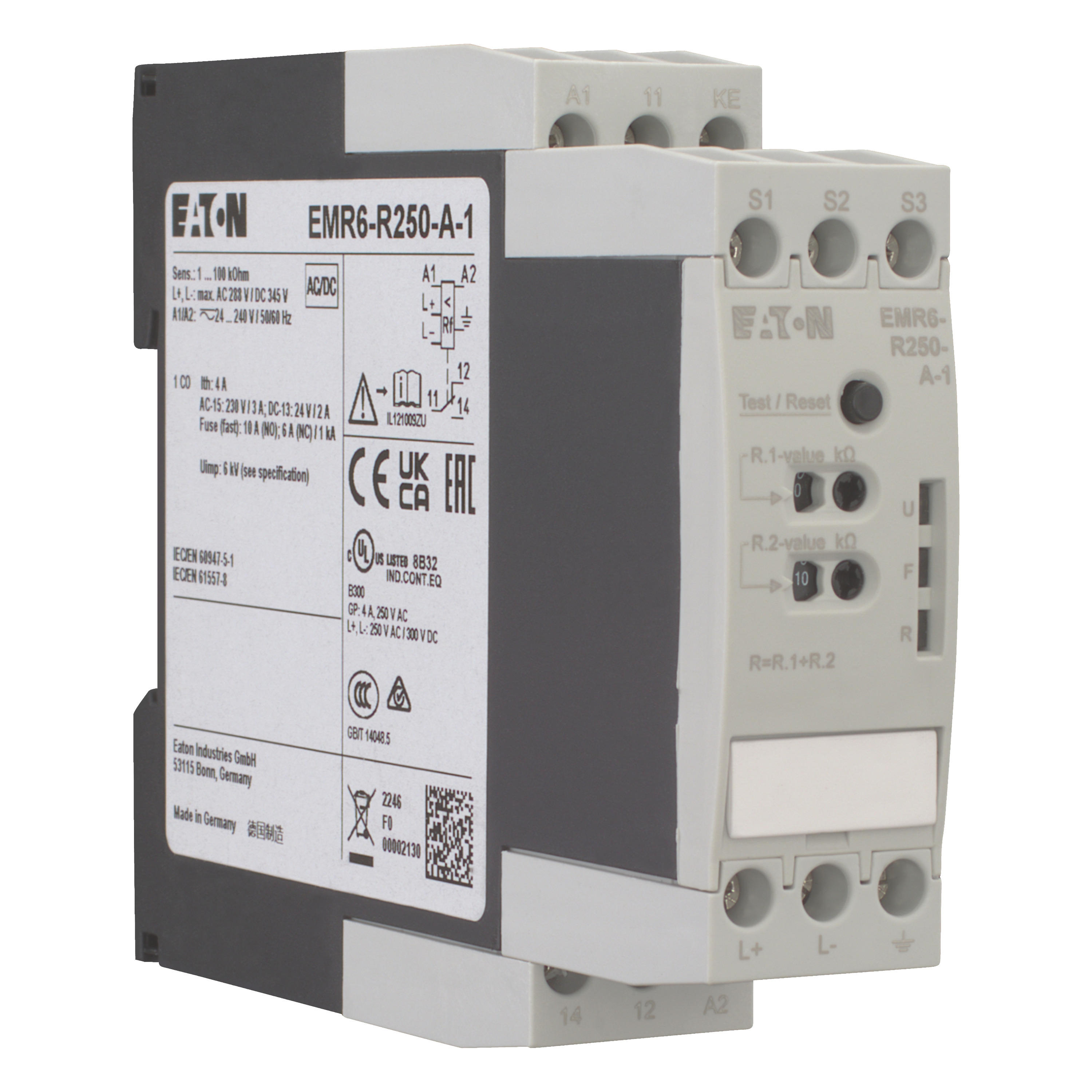 EMR6-R250-A-1 Przekaźnik monitorujący izolację, 0 - 250 V AC, 0 - 300 V DC, 1 - 100 kΩ