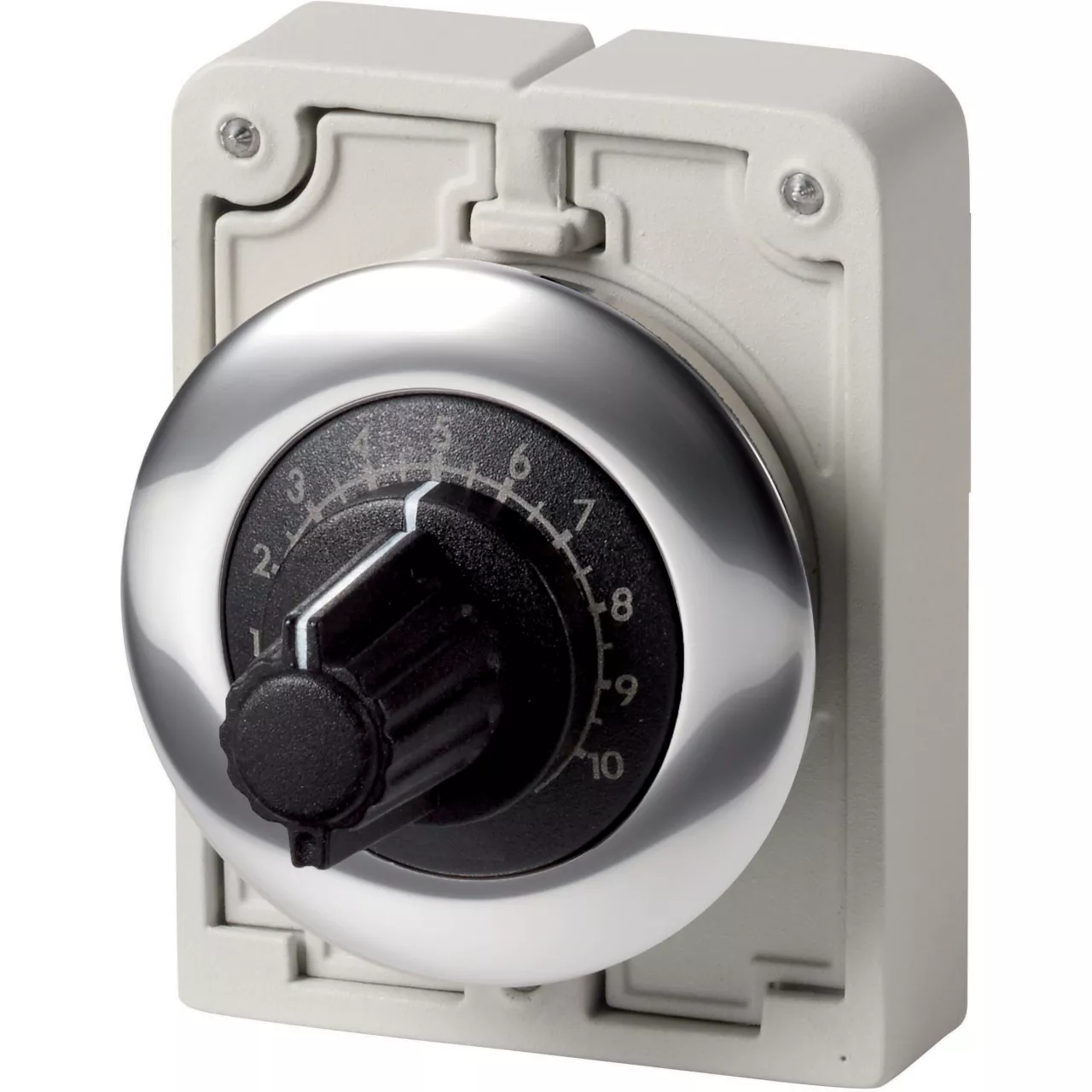 Potencjometr, Konstrukcja RMQ: płaski front, Odniesienie grupy części (np. DIL): M30, Średnice otworów montażowych: 30,5 mm, Urządzenie pojedyncze, Opis: 3 niezależne zaciski śrubowe, Dokładność wartości oporności: ± 10% (liniowo), Impedancja: R = 100 kΩ, moc znamionowa: 0P = 0,5 W, Stopień ochrony: IP66, Ramka metalowa, Podłączanie do SmartWire-DT: nie, Normy: IEC/EN 60947, VDE 0660