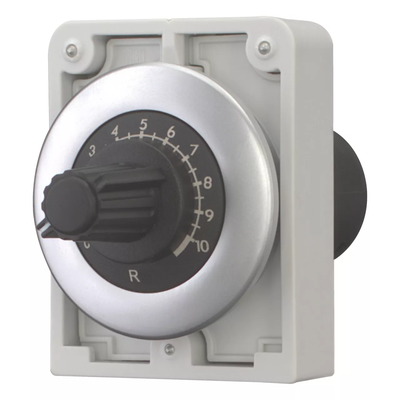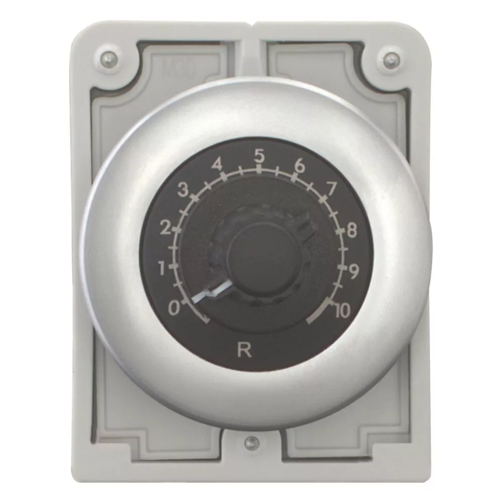 Potencjometr, Konstrukcja RMQ: płaski front, Odniesienie grupy części (np. DIL): M30, Średnice otworów montażowych: 30,5 mm, Urządzenie pojedyncze, Opis: 3 niezależne zaciski śrubowe, Dokładność wartości oporności: ± 10% (liniowo), Impedancja: R = 470 kΩ, moc znamionowa: 0P = 0,5 W, Stopień ochrony: IP66, Ramka metalowa, Podłączanie do SmartWire-DT: nie, Normy: IEC/EN 60947, VDE 0660