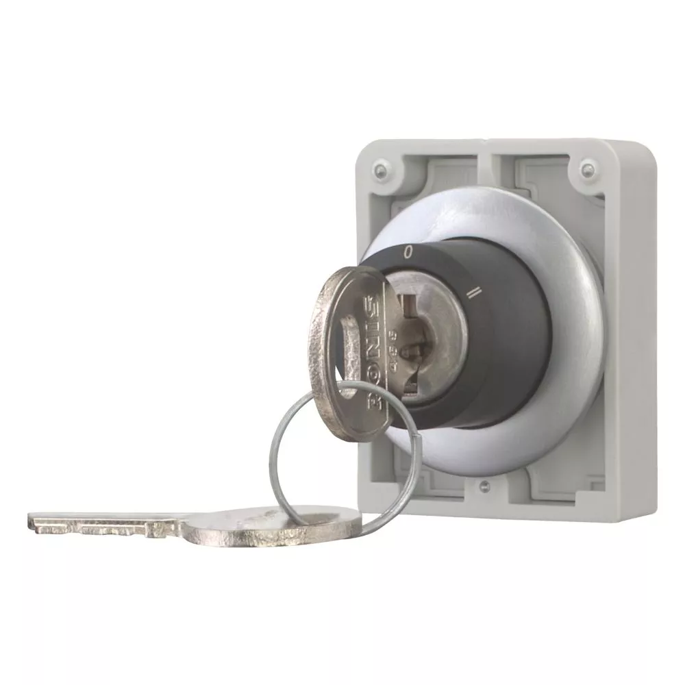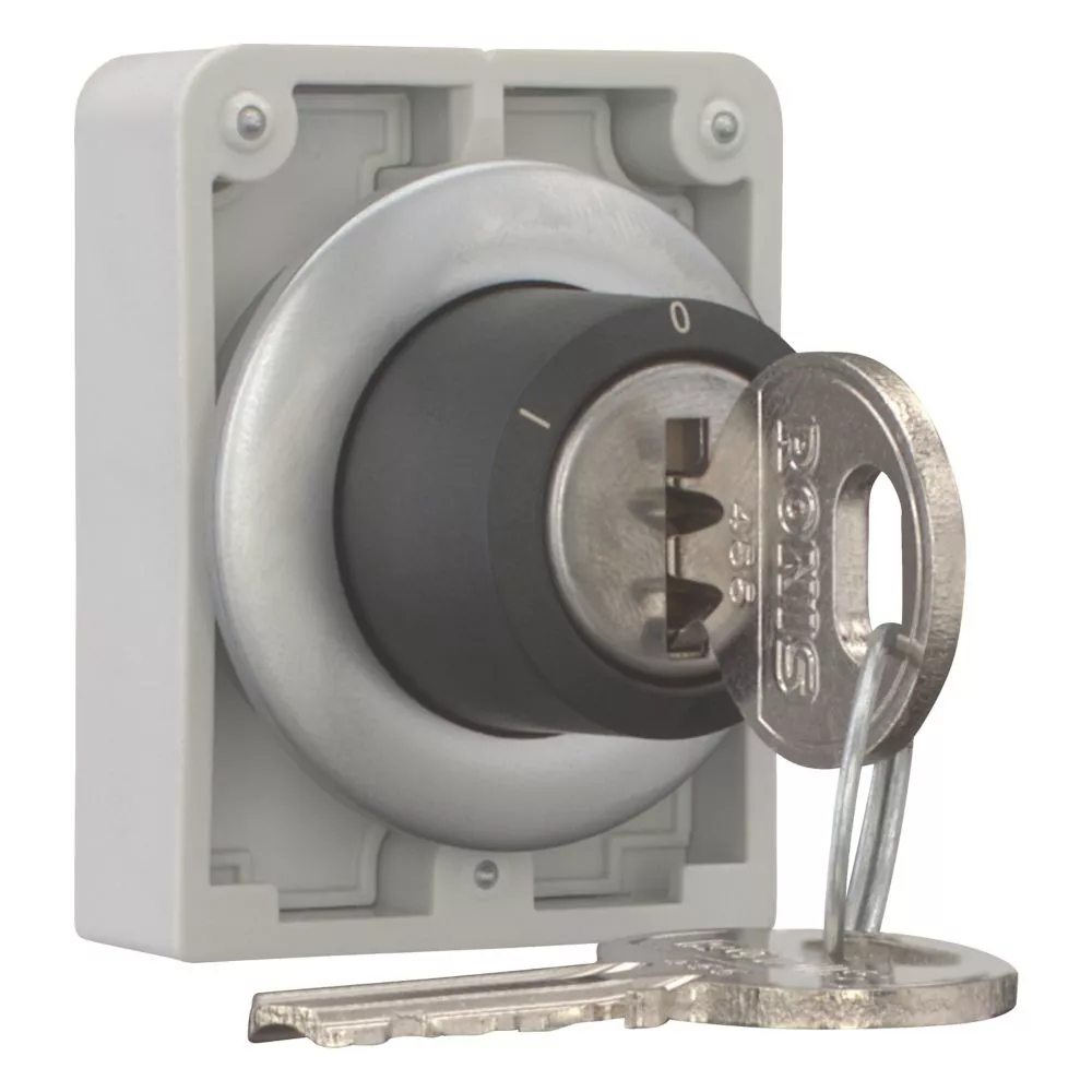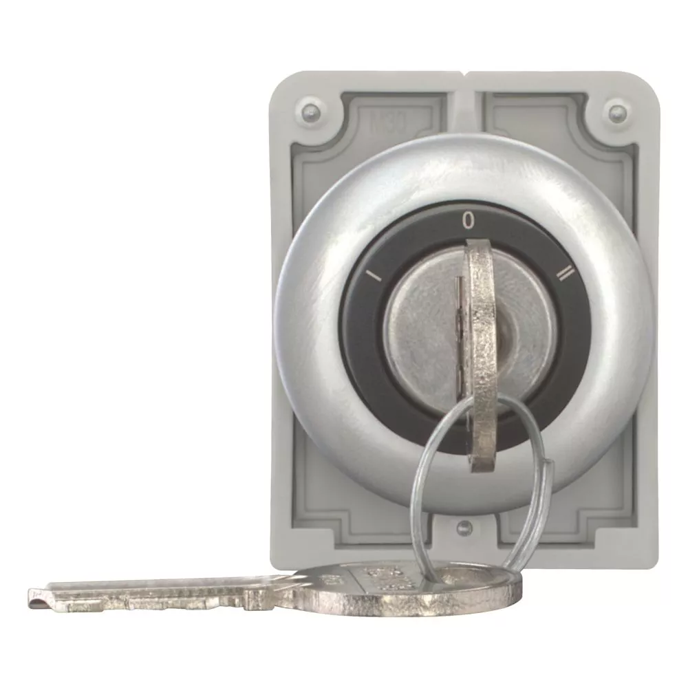 Element uruchamiający z kluczem, Zacisk śrubowy: RMQ-Titan, Urządzenie pojedyncze, Projekt: mechanizm blokujący pracę, na kluczyk, bez samopowrotu, Nie nadaje się do zamków systemowych, 3 położenia, Mechanizm blokujący: Ronis 455, I, II, Stopień ochrony: IP64, Ramka metalowa, Podłączanie do SmartWire-DT: tak, z przyłączami SWD-RMQ, Wymiary przedniej części: Ø36 mm, Instrukcje: Funkcja zatrzymania / powracania przycisku, może zostać zmieniony za pomocą elementów kodujących M22-XC-Y, Konfigurowalny kluczyk wysuwny z adapterami kodującymi M22-XC-…, z mostkiem popychacza dla styku środkowego, z dwoma kluczykami, Normy: IEC/EN 60947, VDE 0660, Stopień ochrony: IP64