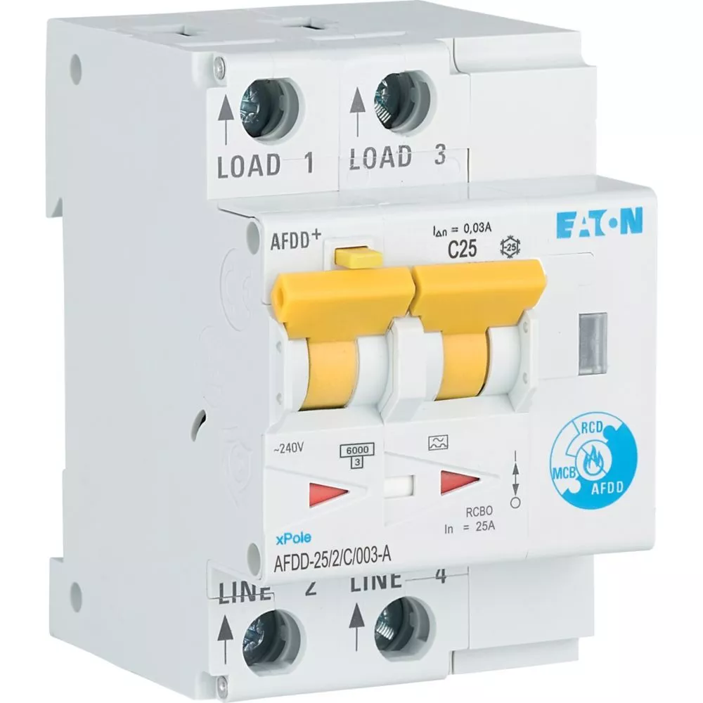 Wysokiej jakości Przeciwpożarowy detektor iskrzenia (AFDD) z wyłącznikiem kombinowanym, niezależny od napięcia sieciowego, wskaźnik położenia styku czerwono-zielony, zabezpieczenie tylnej wtyczki zacisku, zatrzask do mocowania na szynie TH - umożliwia demontaż z istniejącego systemu szyn zbiorczych, szeroki zakres akcesoriów odpowiednich do późniejszej instalacji, szeroki zakres znamionowych prądów zwarciowych, znamionowe prądy robocze do 40 A, charakterystyki wyzwalania B, C, D, znamionowa zdolność wyłączania 10 kA, odpowiednie do użytku na zewnątrz (zasilanie na miejscu i rozdzielnica zewnętrzna) do -25 °