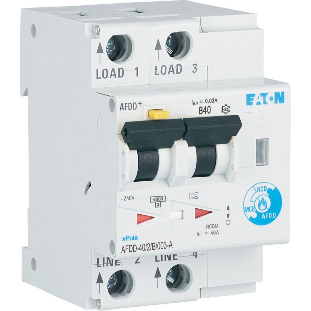 Wysokiej jakości Przeciwpożarowy detektor iskrzenia (AFDD) z wyłącznikiem kombinowanym, niezależny od napięcia sieciowego, wskaźnik położenia styku czerwono-zielony, zabezpieczenie tylnej wtyczki zacisku, zatrzask do mocowania na szynie TH - umożliwia demontaż z istniejącego systemu szyn zbiorczych, szeroki zakres akcesoriów odpowiednich do późniejszej instalacji, szeroki zakres znamionowych prądów zwarciowych, znamionowe prądy robocze do 40 A, charakterystyki wyzwalania B, C, D, znamionowa zdolność wyłączania 10 kA, odpowiednie do użytku na zewnątrz (zasilanie na miejscu i rozdzielnica zewnętrzna) do -25 °