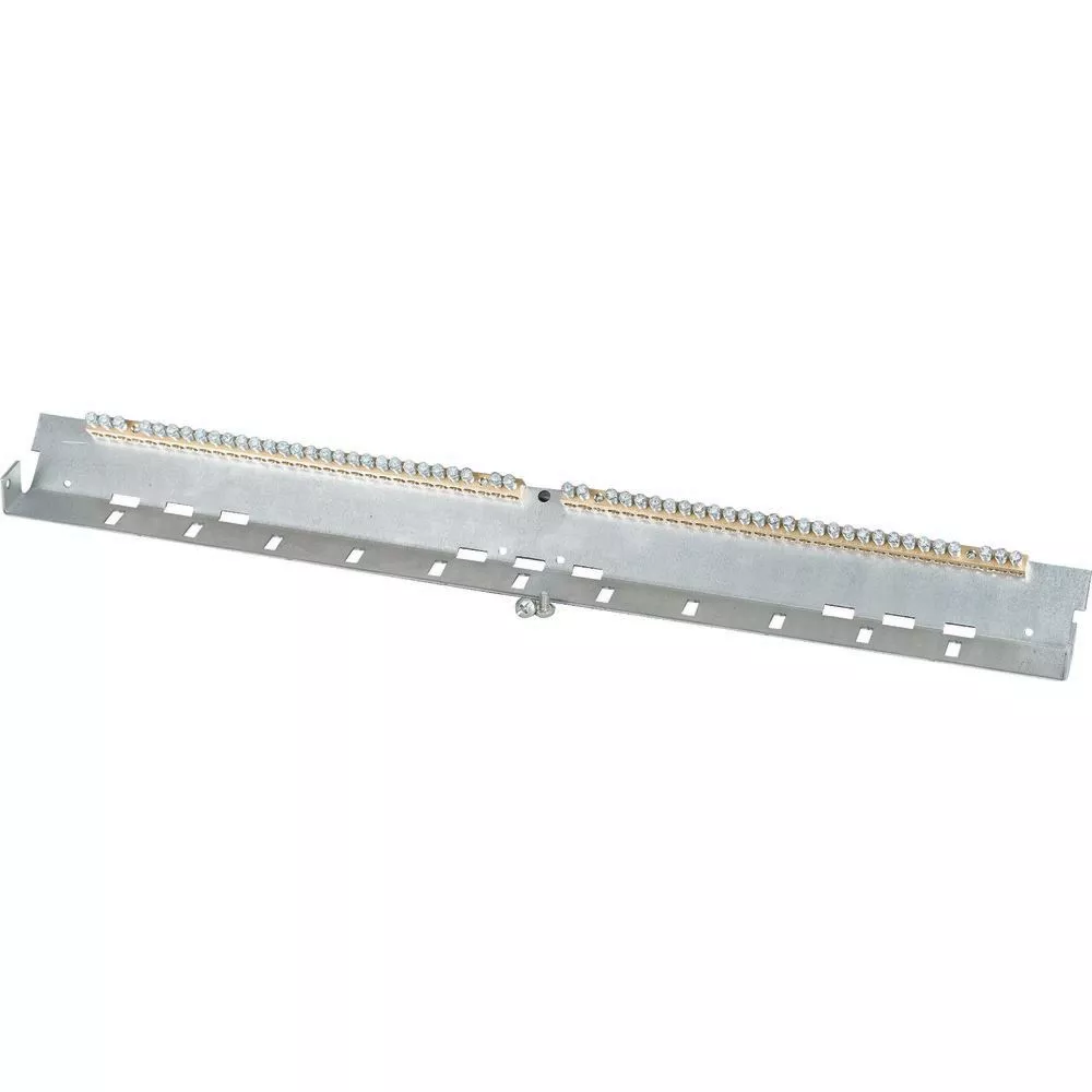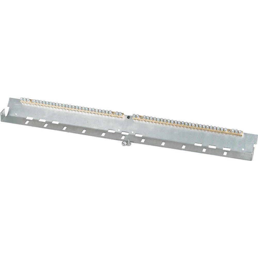 BPZ-TSB Klemmenträgerschiene, vorbereitet für den Einbau oben/unten im Gehäuse, Montage in Kombination mit Eckturmset BPZ-CTS, inkl. zwei (2) vorbestückter Messing-Schienen KL-45, verwendbar als Erdungsschiene für Installationsabgänge