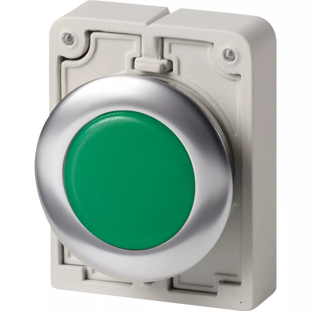 Lampka sygnalizacyjna, Zacisk śrubowy: RMQ-Titan, Urządzenie pojedyncze, Projekt: płaski, Kolor soczewek: zielony, Wkładka przycisku możliwość zastosowania własnego oznaczenia, Stopień ochrony: IP66, IP67, IP69K, Pierścień czołowy stal nierdzewna, Podłączanie do SmartWire-DT: tak, z przyłączami SWD-RMQ, Wymiary przedniej części: Ø 36 mm, Normy: IEC/EN 60947, VDE 0660